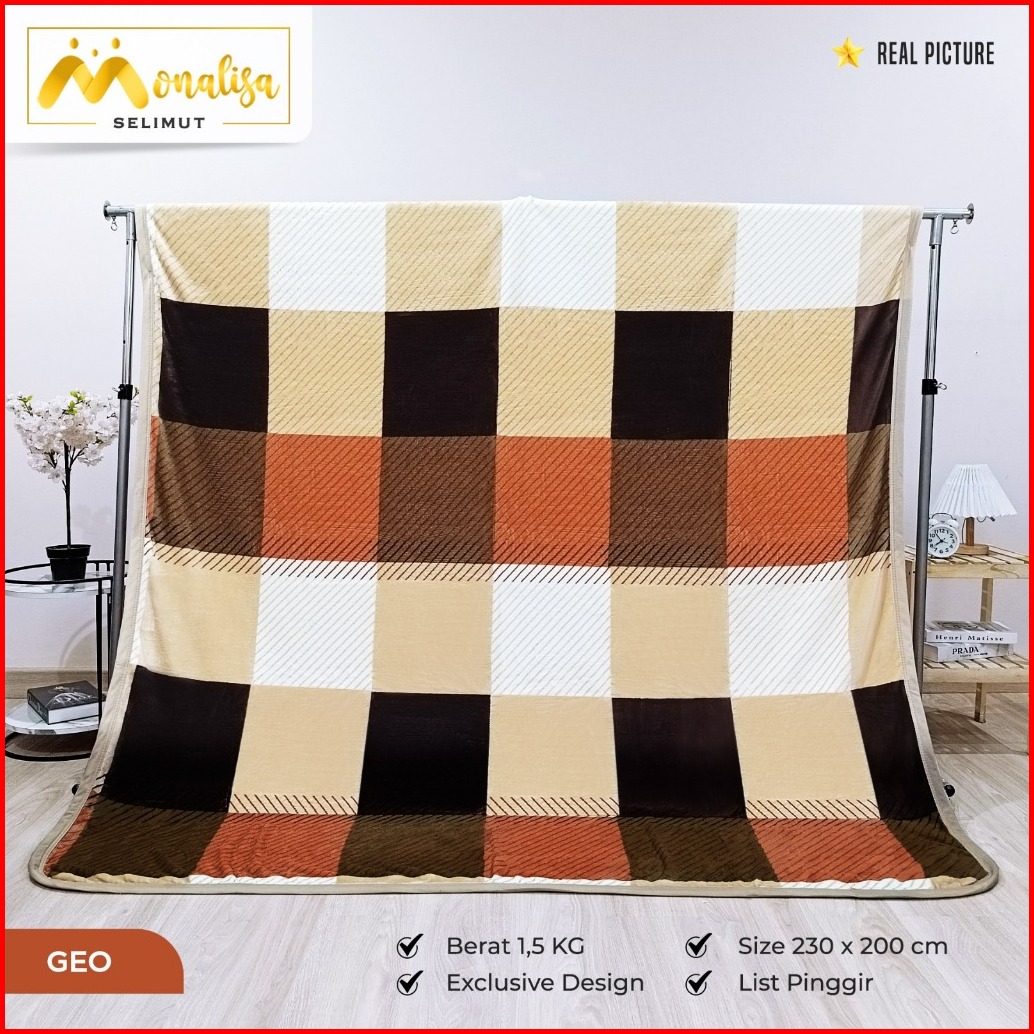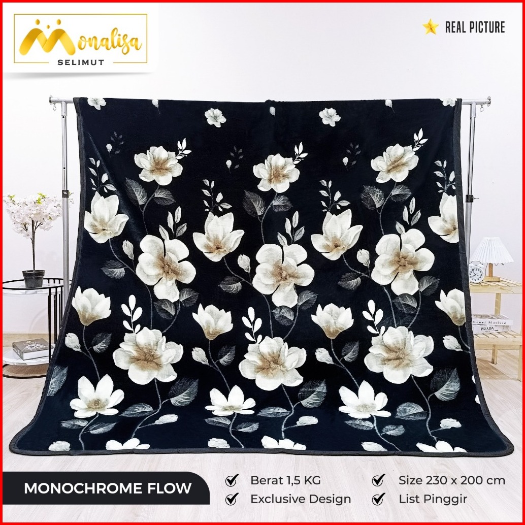 Monalisa Selimut Bulu Jumbo Halus Tebal Berat 1500 Gram Uk 230 X 200 Cm - Motif Abstrak Bunga -1