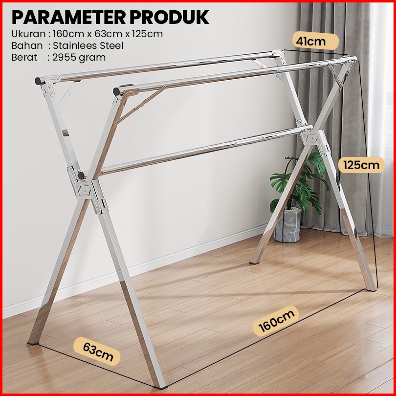 Jemuran Baju Lipat Stainless Steel Jemuran Pakaian Outdoor Indoor Jemuran Baju Basah Tahan Karat Af