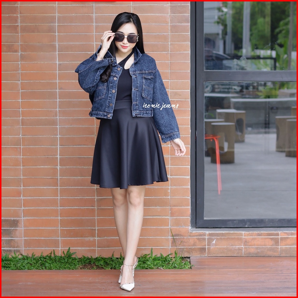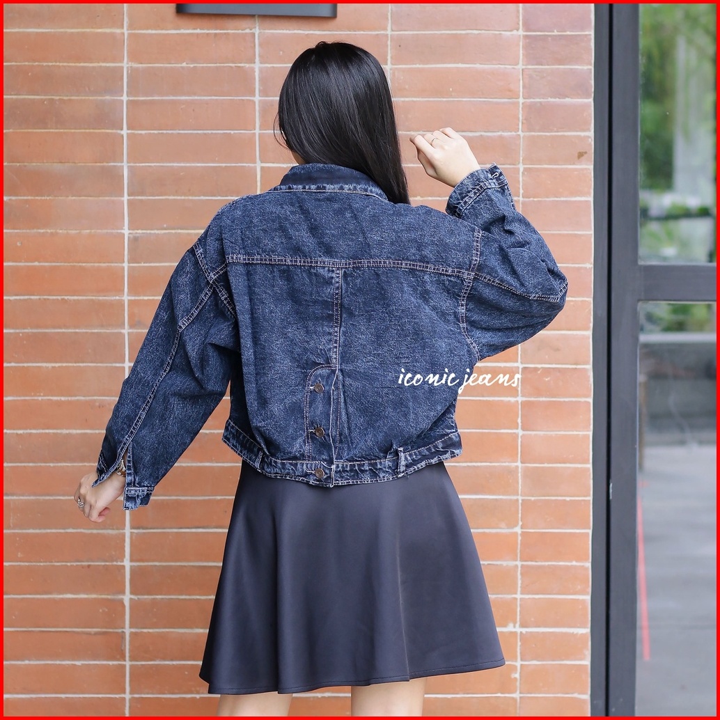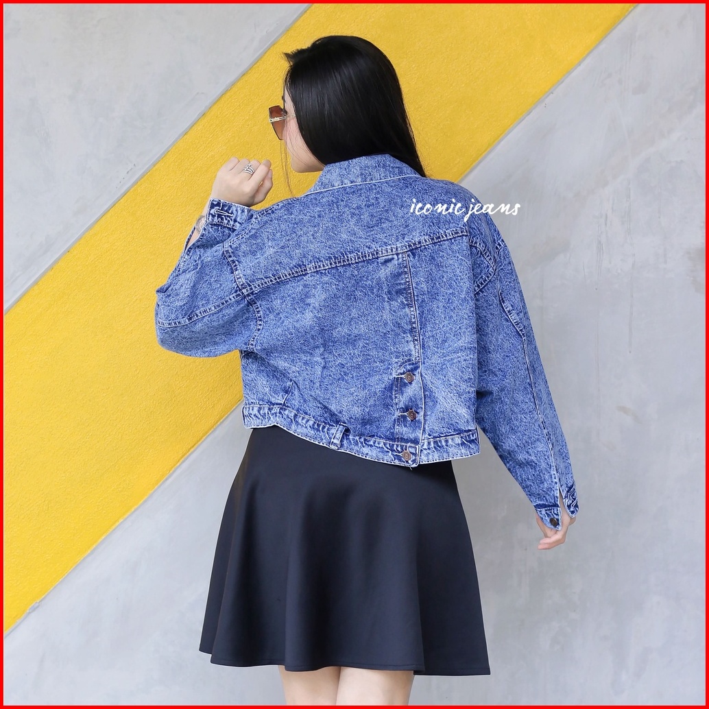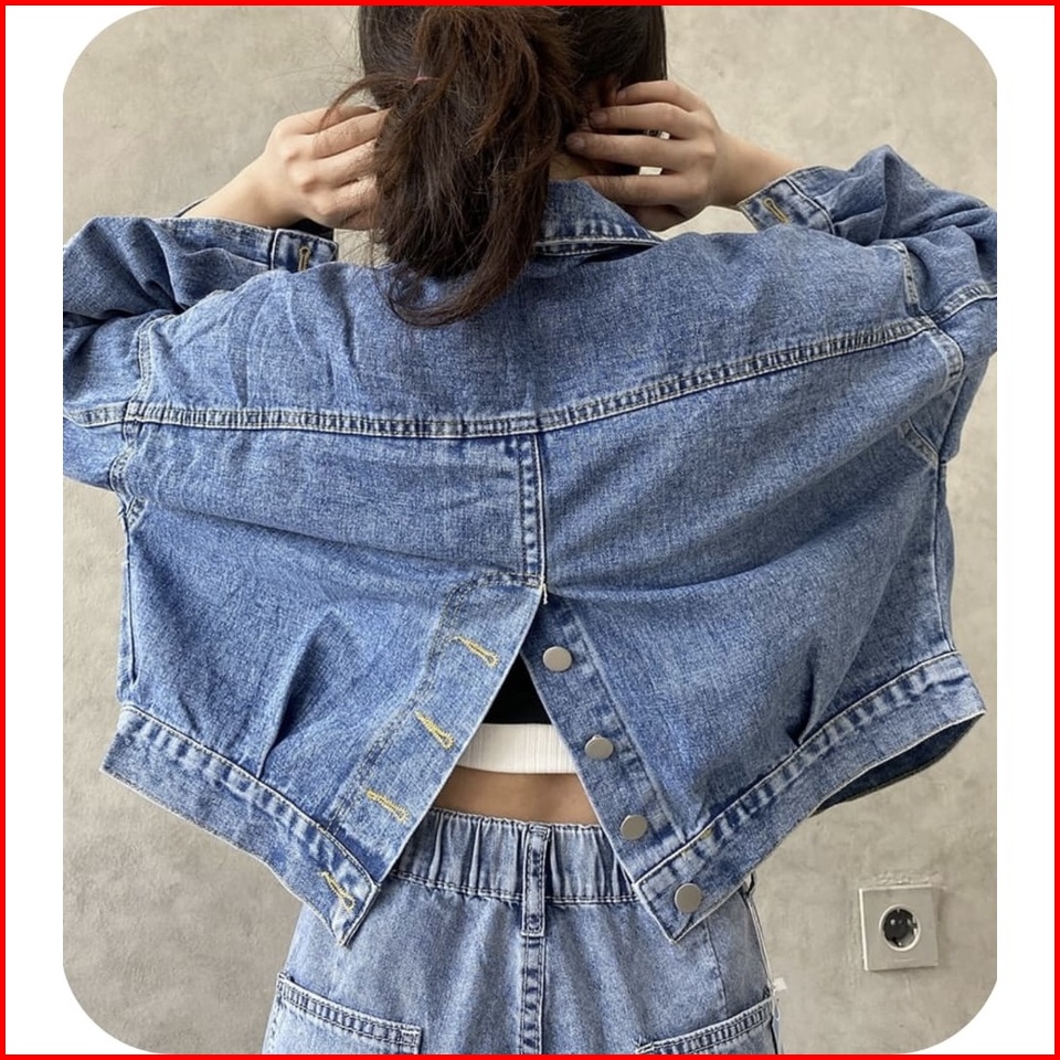 Elona Jeans Jacket Crop Belah Belakang
