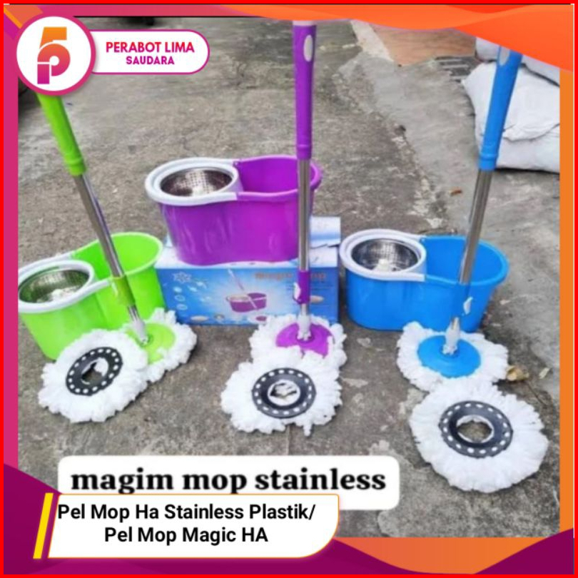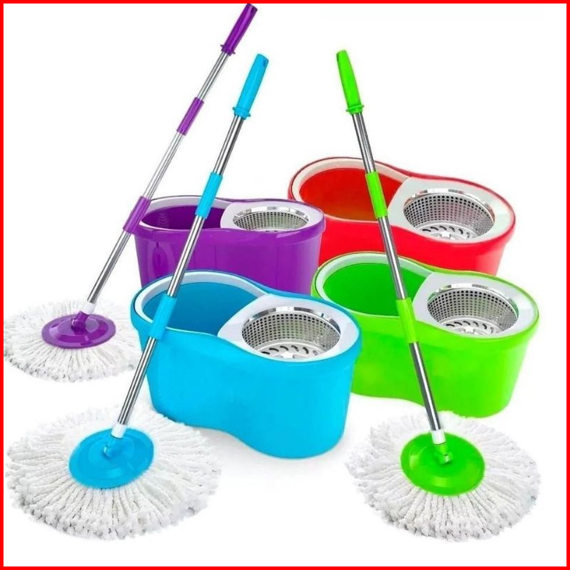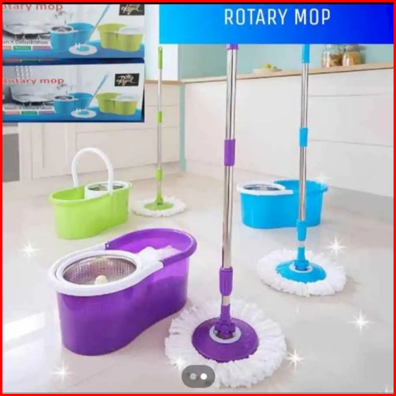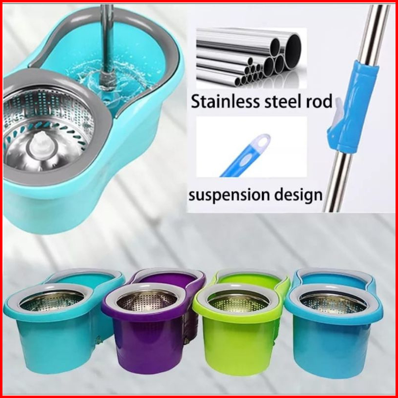 Alat Pel Spin Mop Putar Otomatis Pel Mop Putaran Stainless Plastik Rotary Mop Alat Pel Set Ember