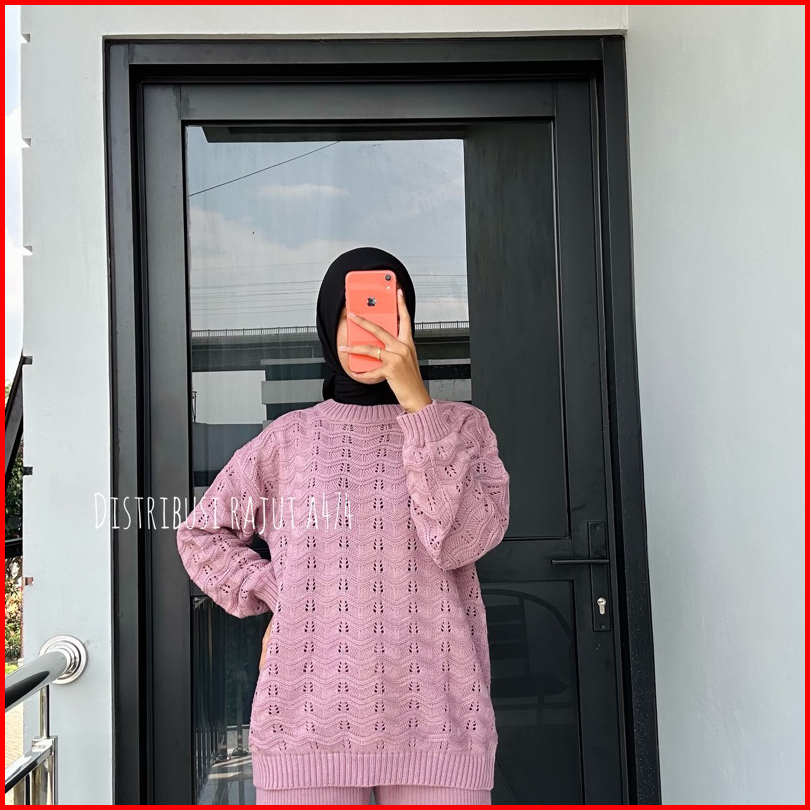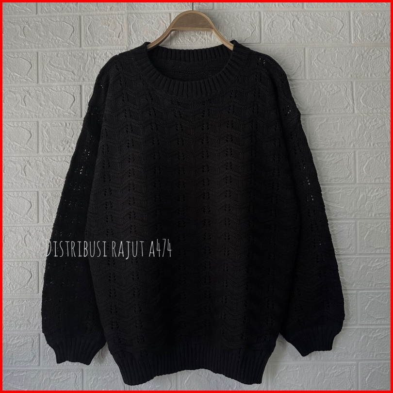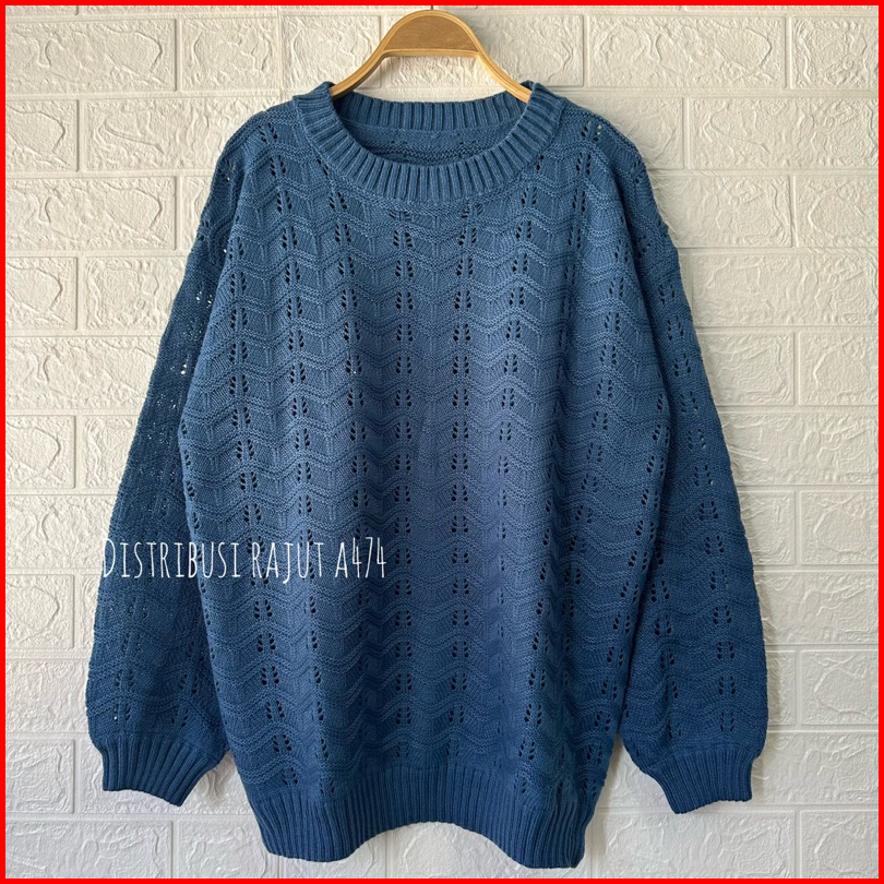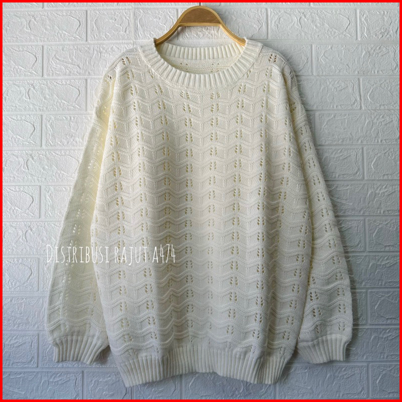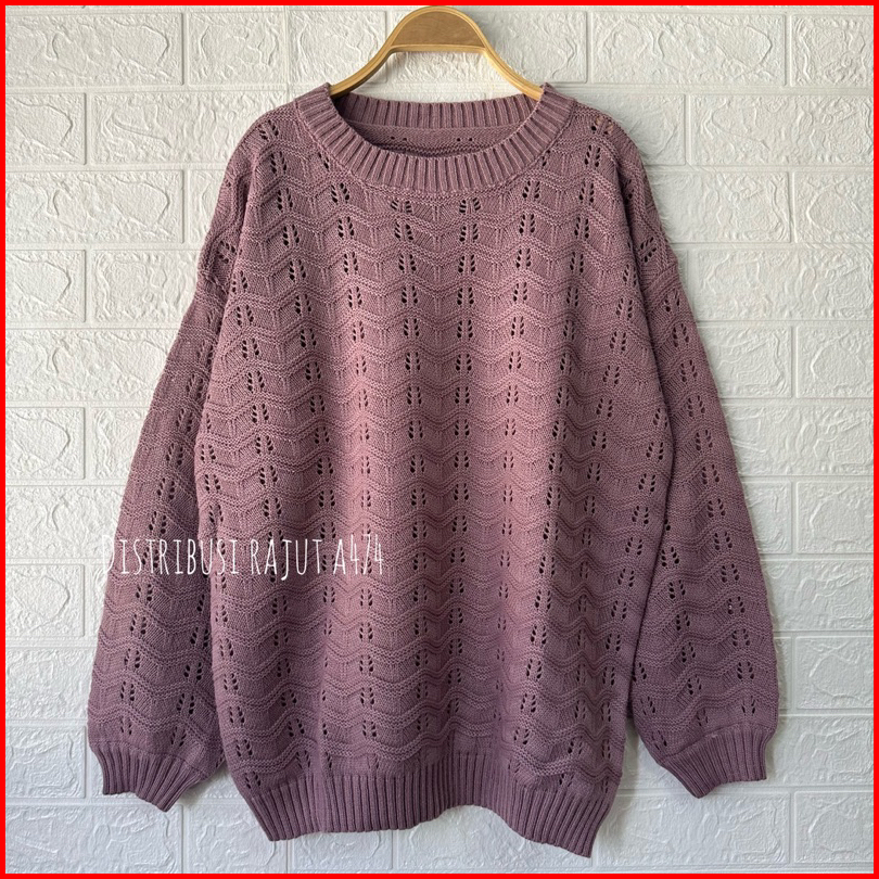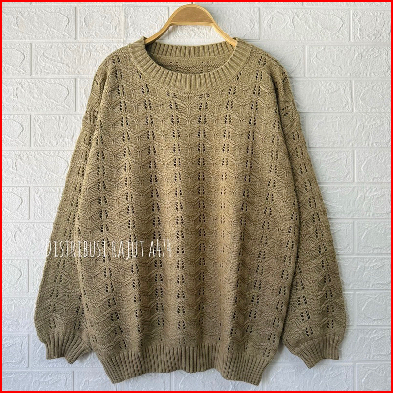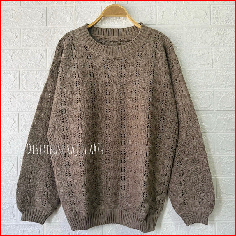Sweater Rajut Oversize Azizah Motif Jaring Wanita Korea Lengan Panjang