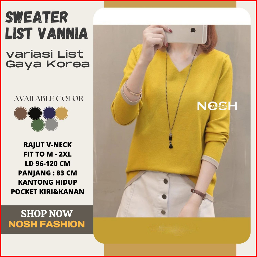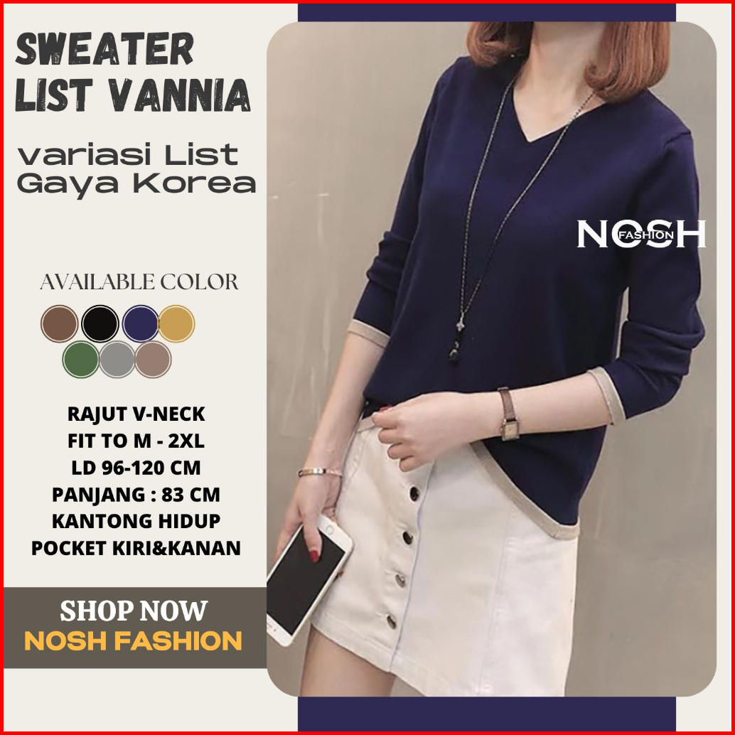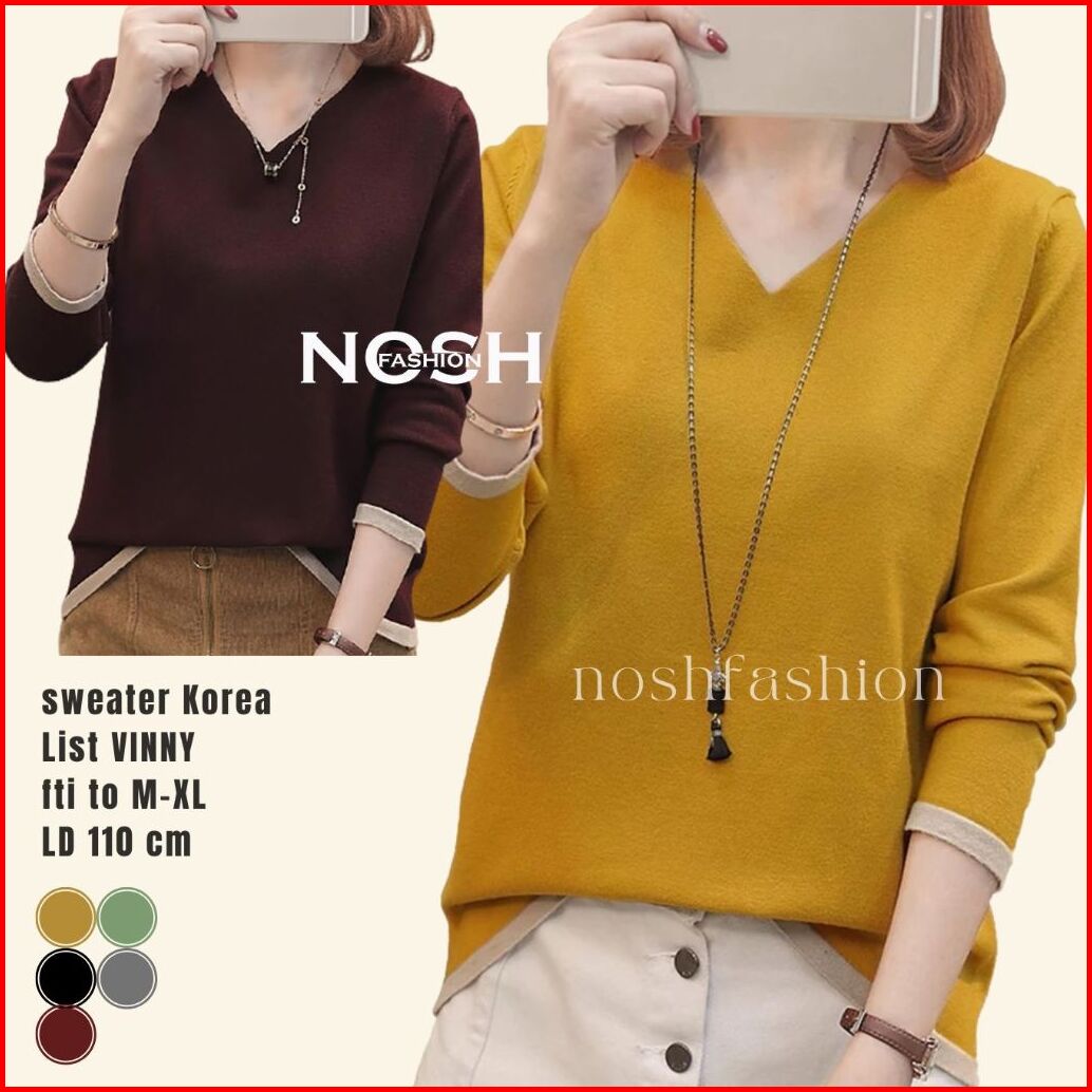 Sweater Oversize Wanita Outer Switer Rajut Wanita Dewasa Korea Switer Oversize Vinni Vneck Lengan Panjang Gaya Korea Fin