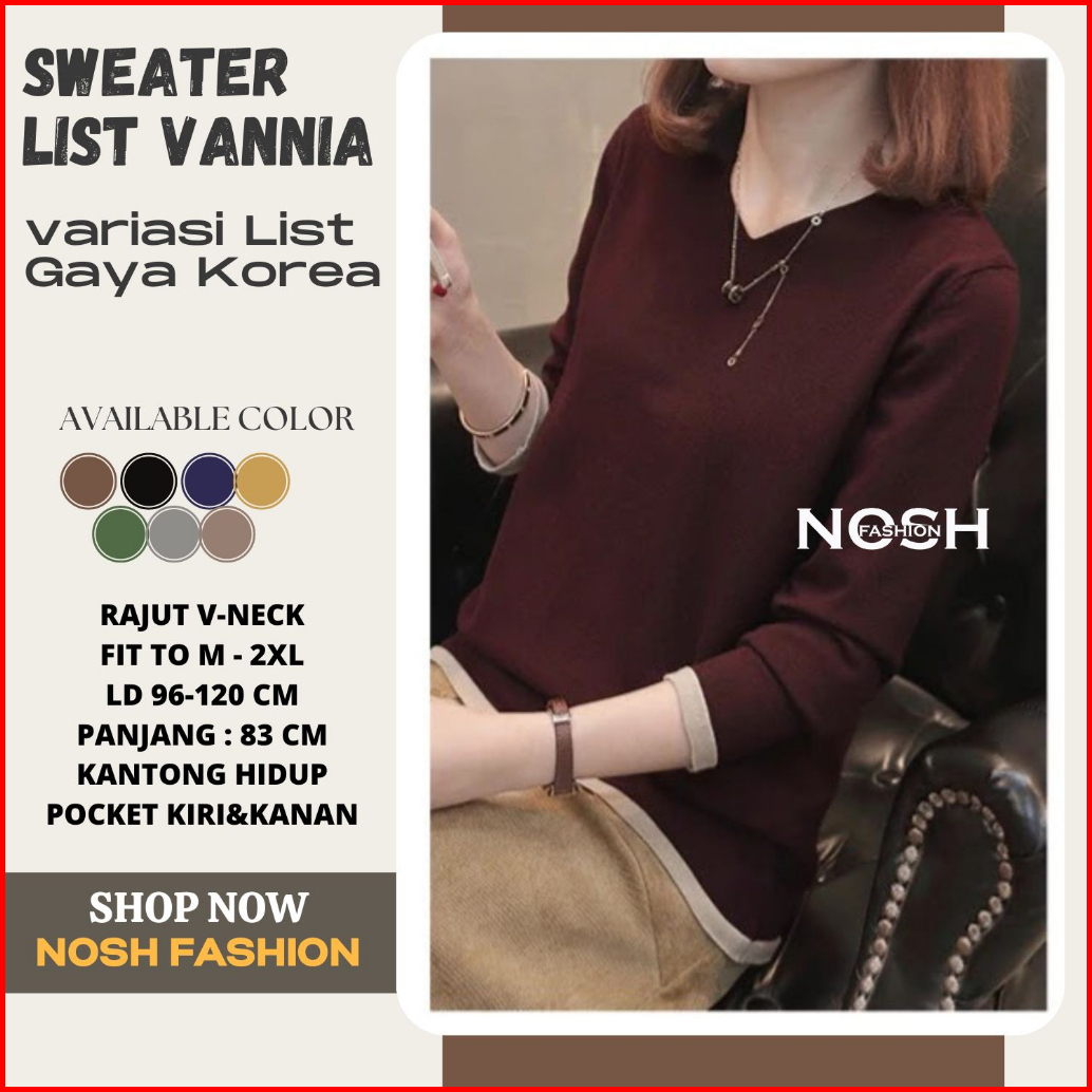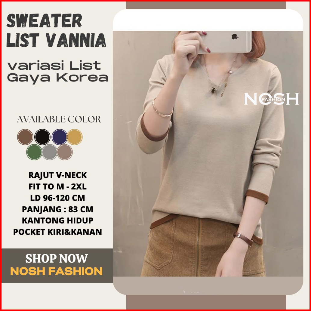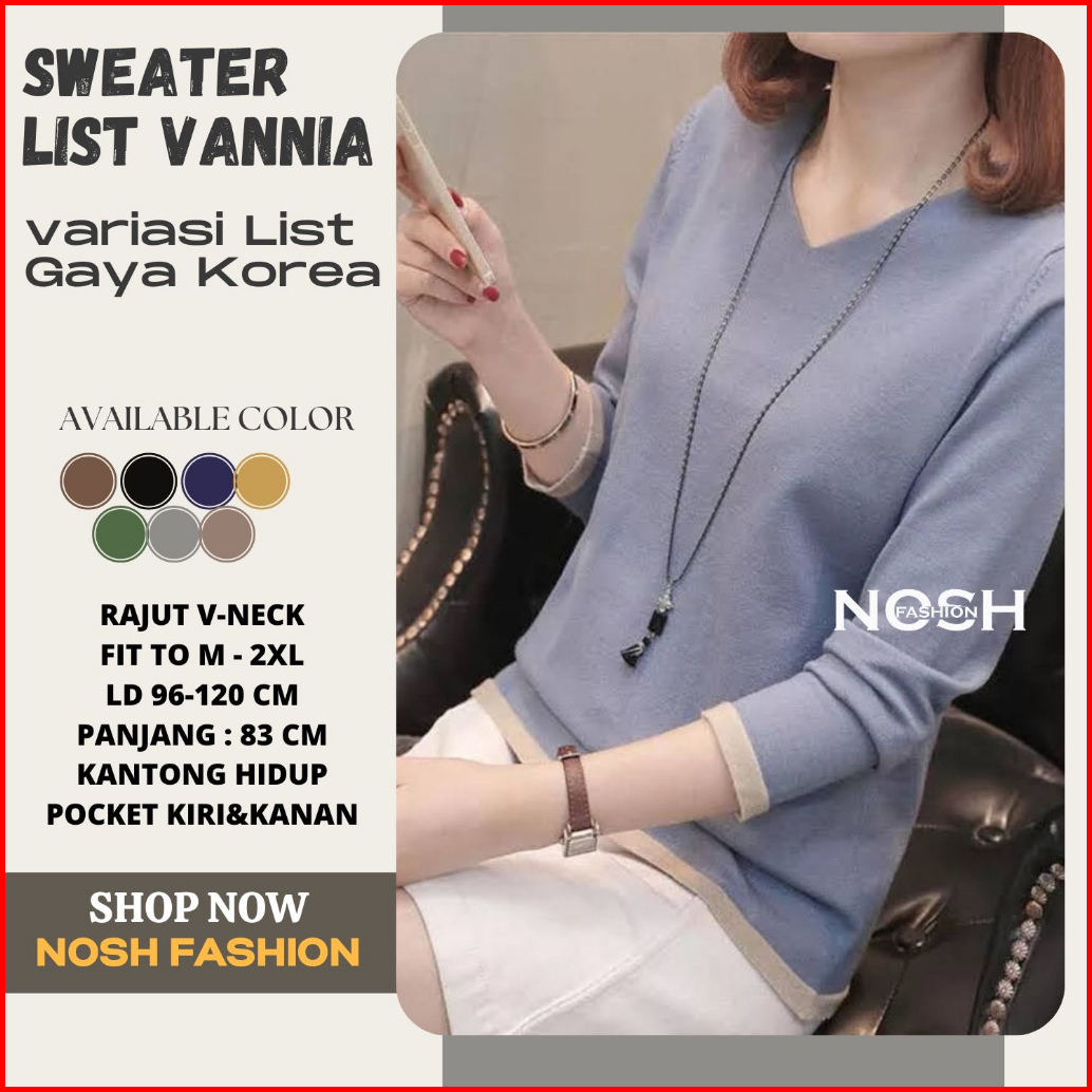 Sweater Oversize Wanita Outer Switer Rajut Wanita Dewasa Korea Switer Oversize Vinni Vneck Lengan Panjang Gaya Korea Fin