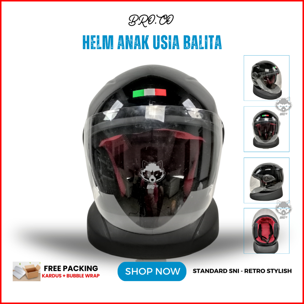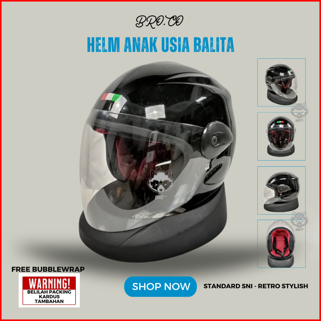 Helm Anak Batita Balita Polos Sni Half Face Usia 2-3-4 Tahun Simple Simpel Lucu Keren Motif Bendera Italy Untuk Cowok-ce
