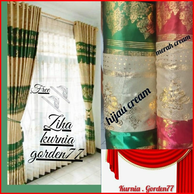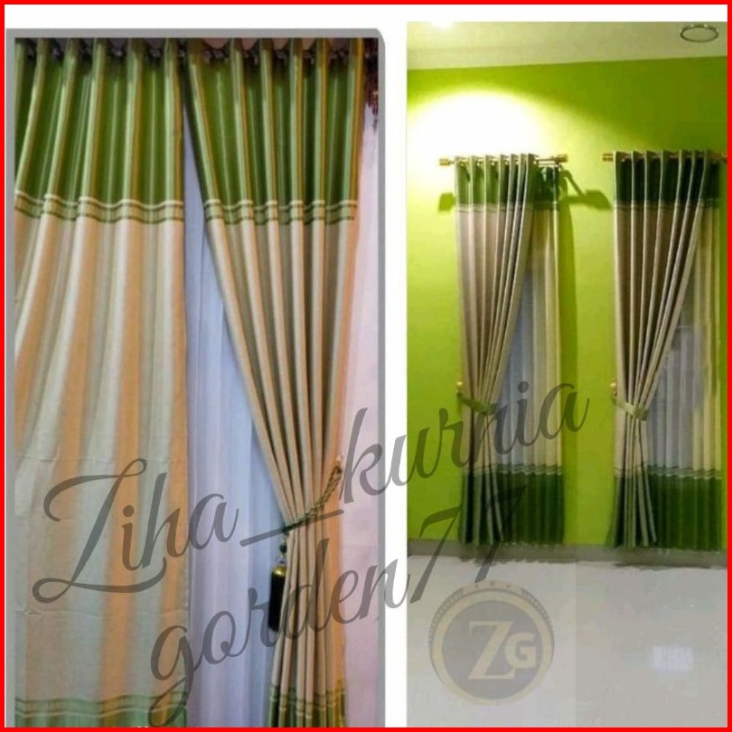 Hordeng Jendela Gorden Import Gorden Minimalis Tirai Pintu Beludru Hijau Mint Motif Atas Bawah Embos