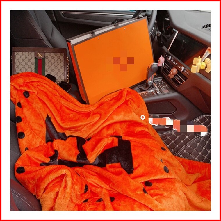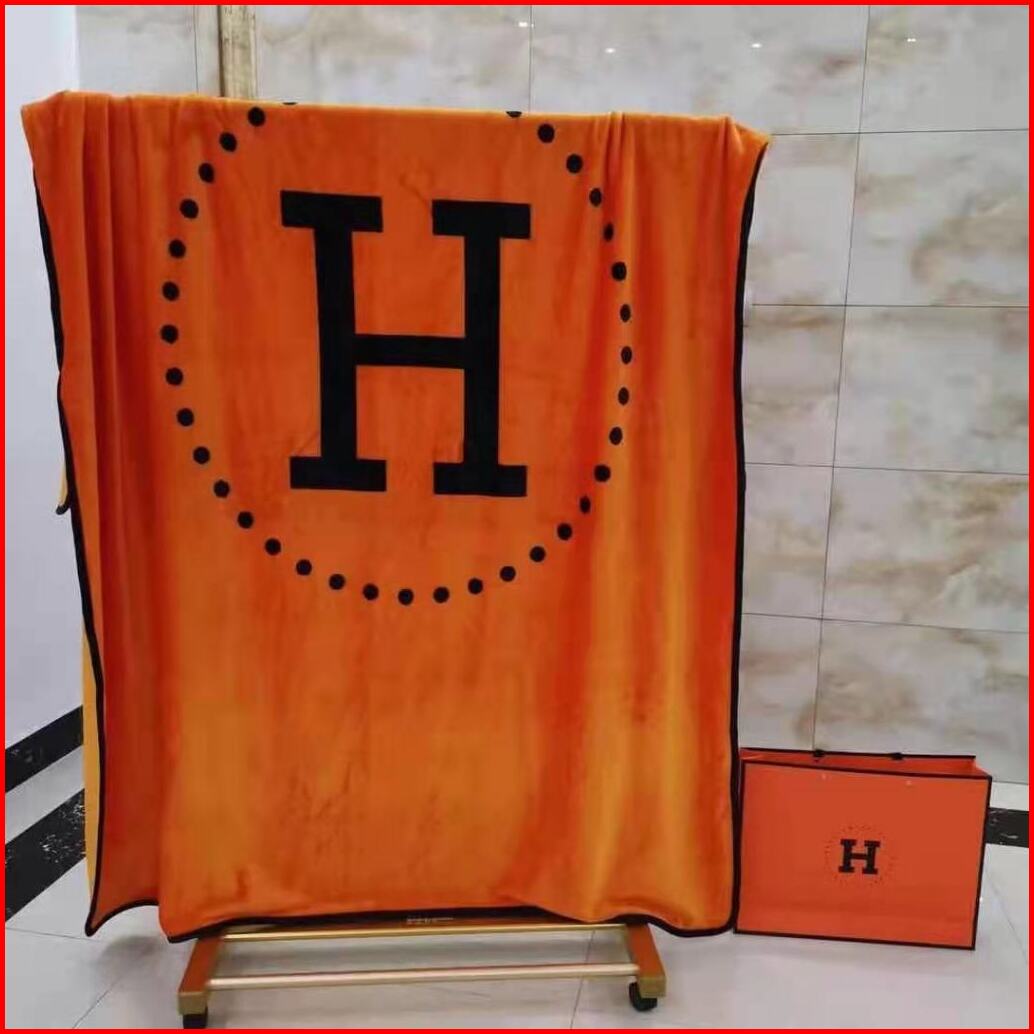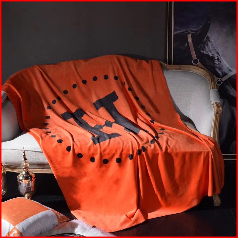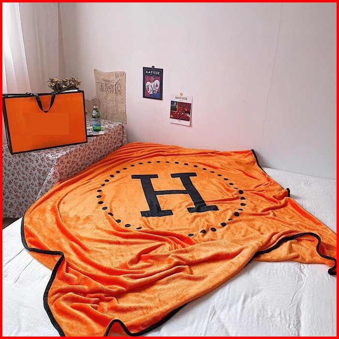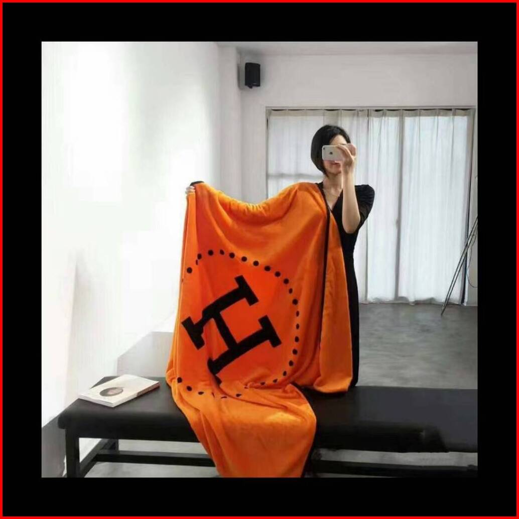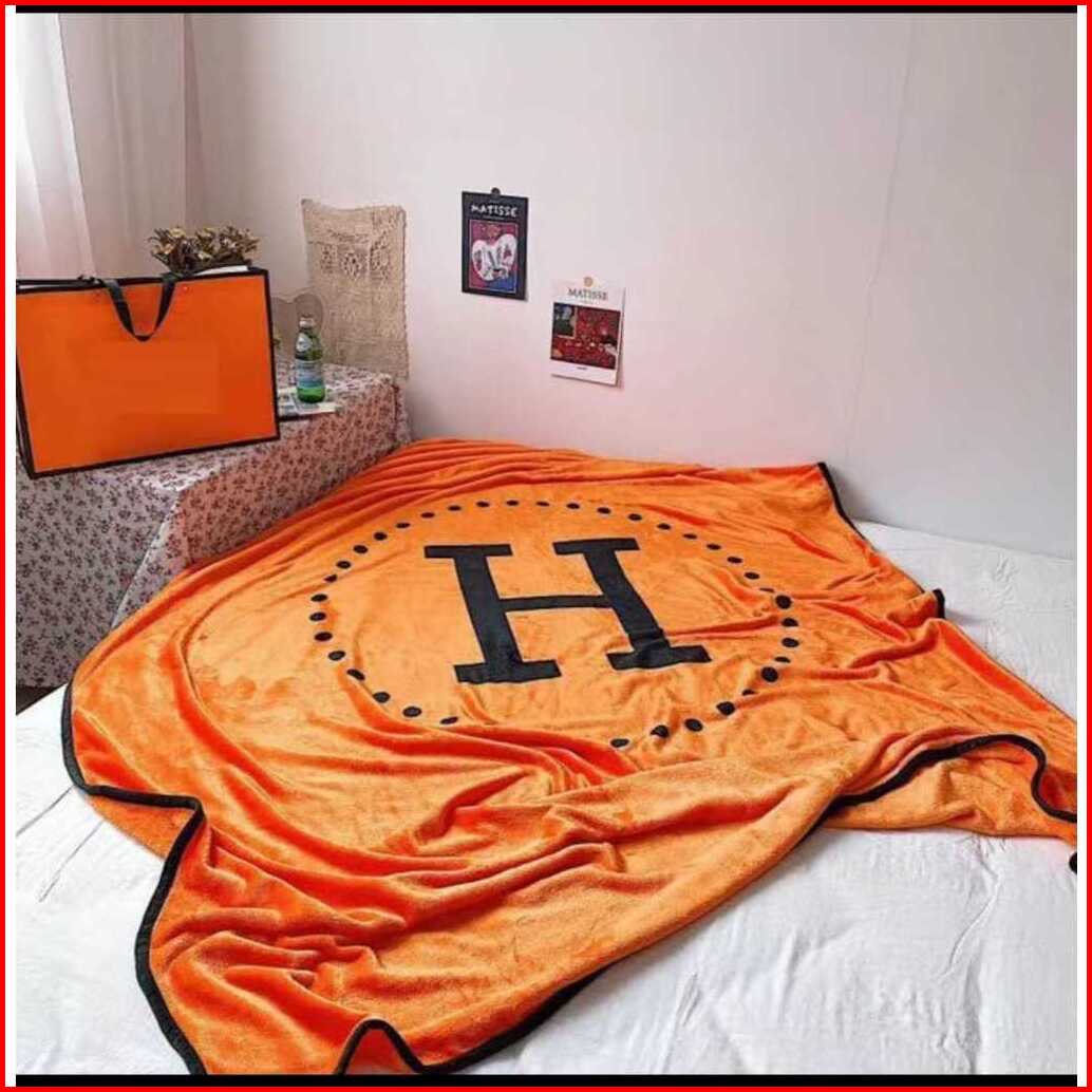 Selimut Premium Elegan Warna Oranye Dengan Motif Huruf H