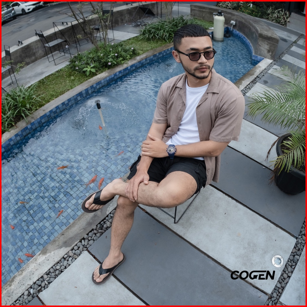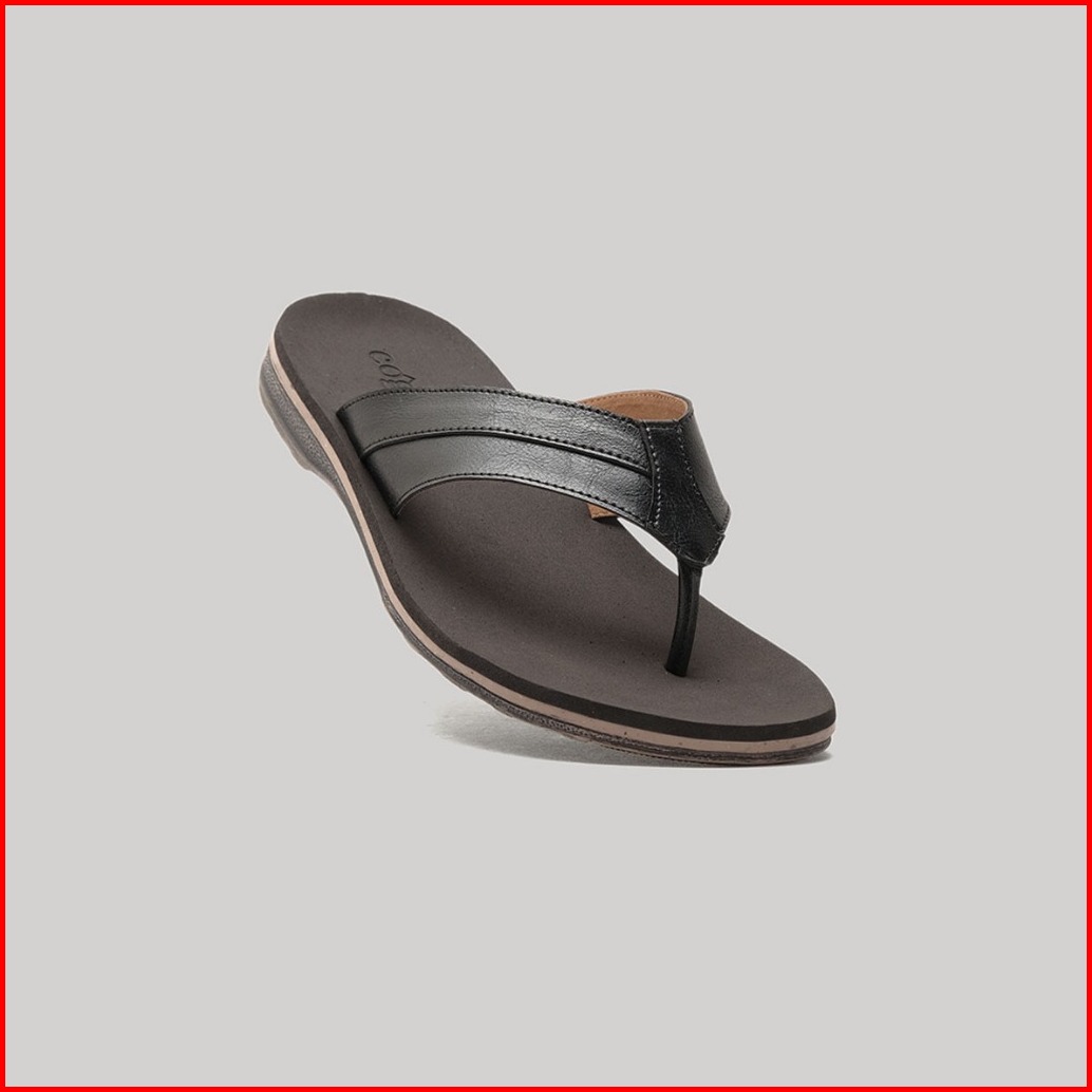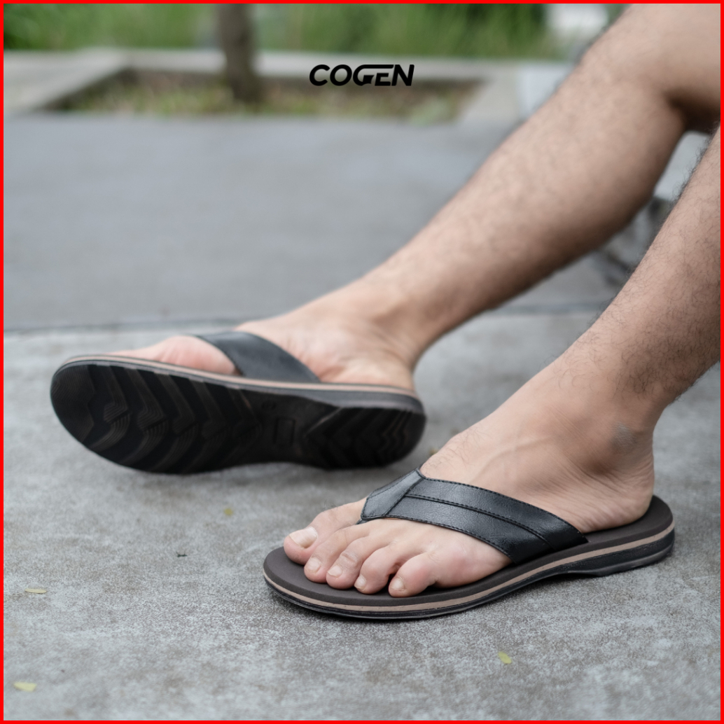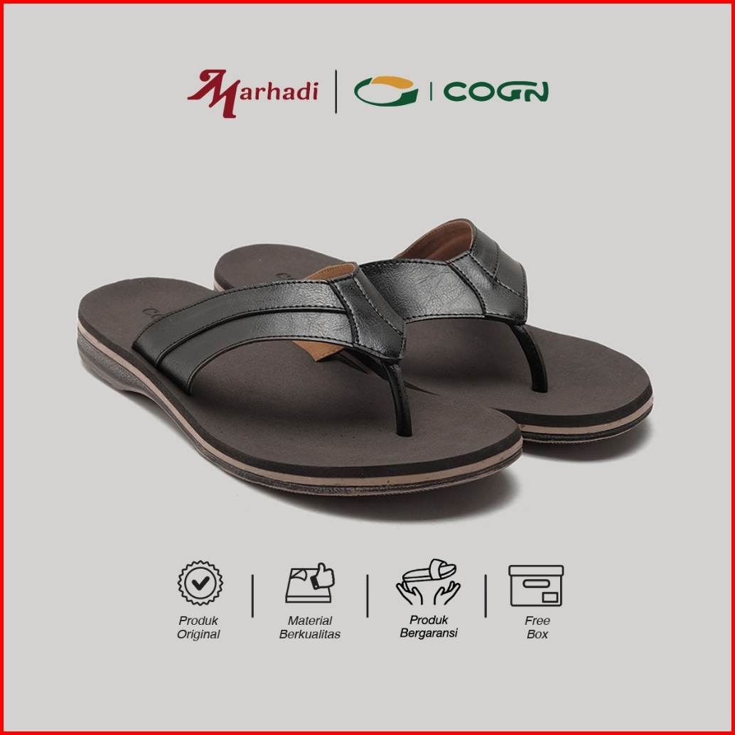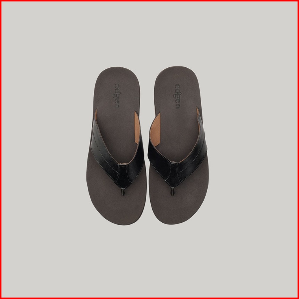 Cogen Sendal Jepit Kulit Pria Sandal Cowok Kulit Marino Series Leather - Black