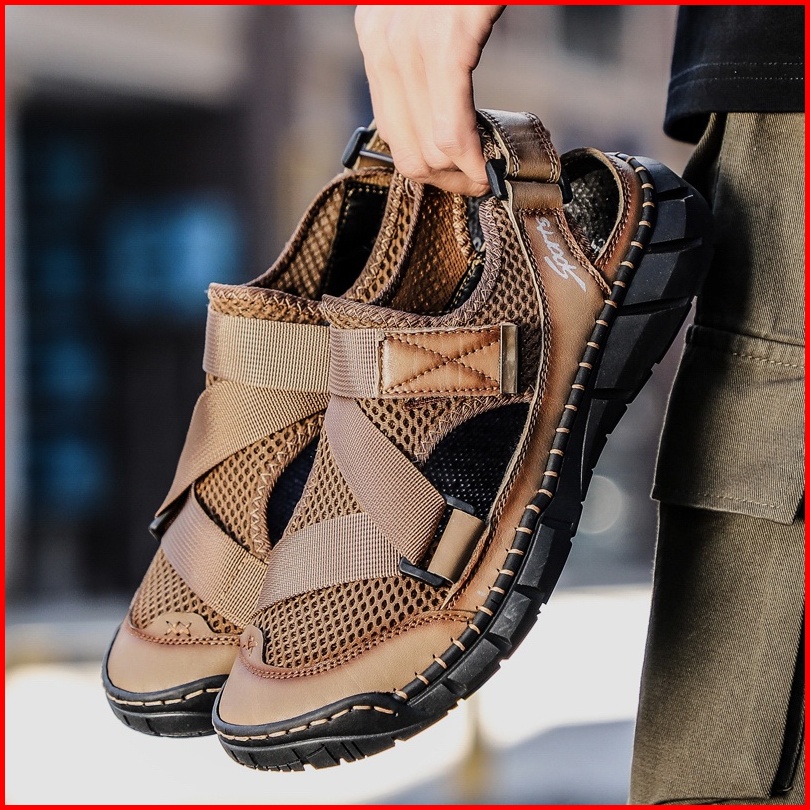 Sandal Hiking Gunung Pria Original Sendal Kulit Asli Cowok Outdoor Keren Adventure Laki Laki 041