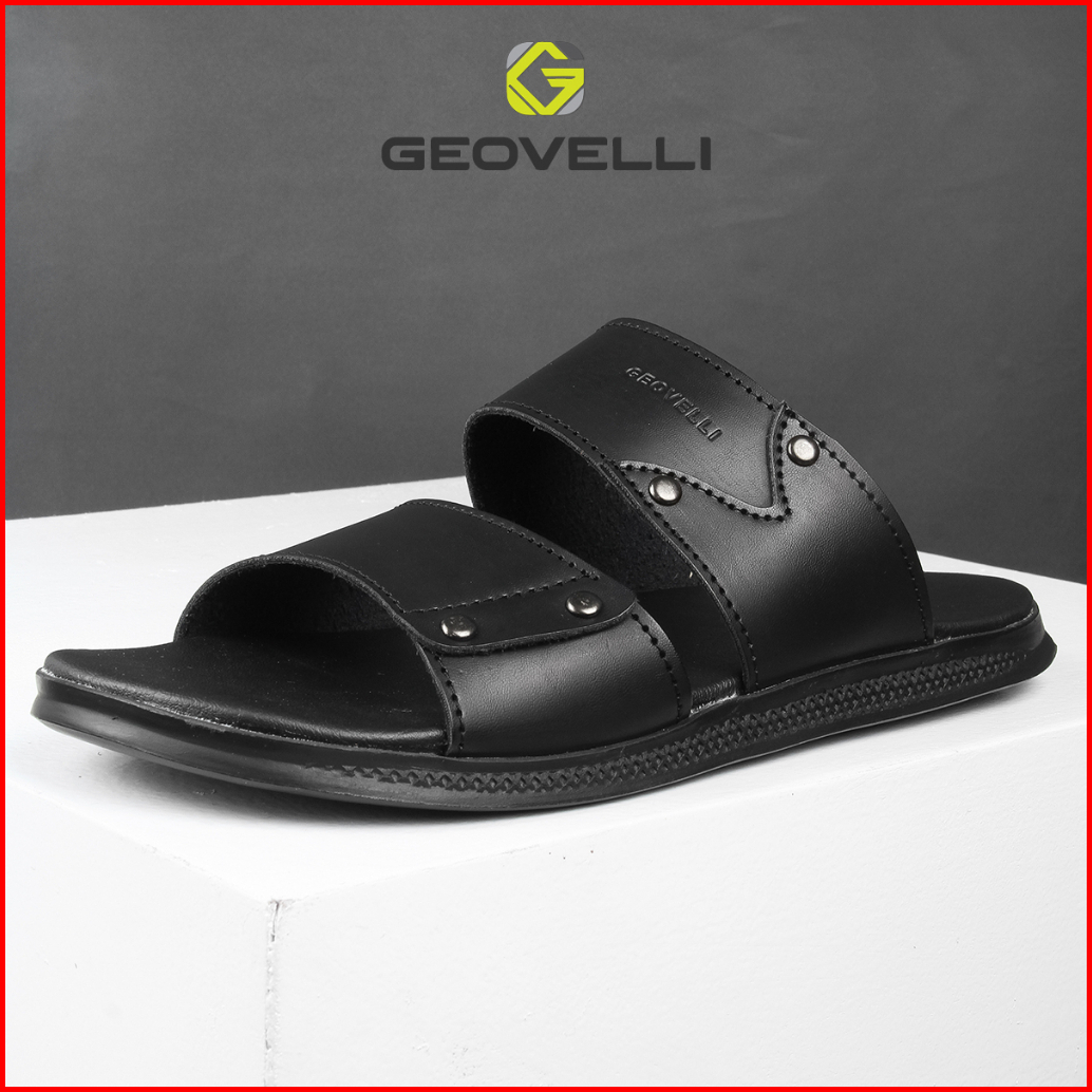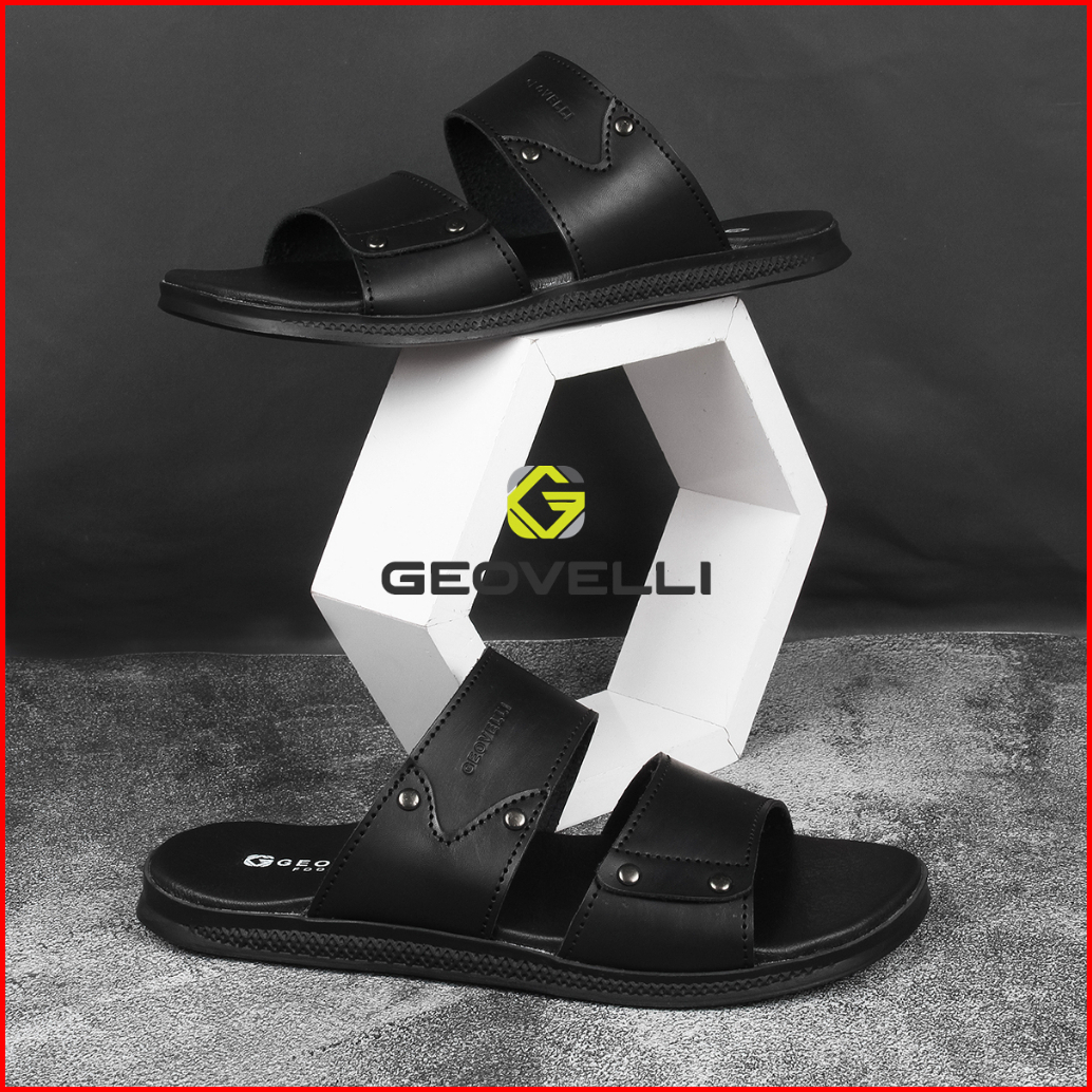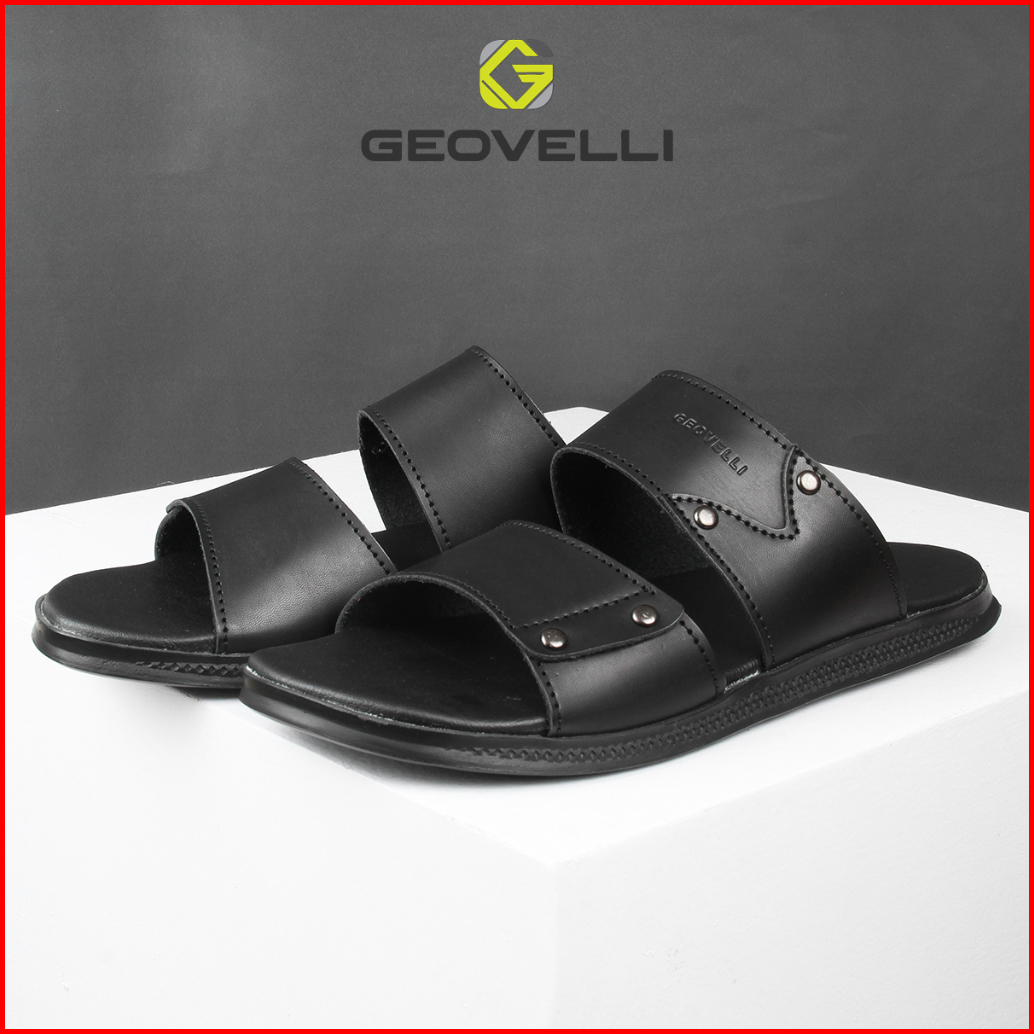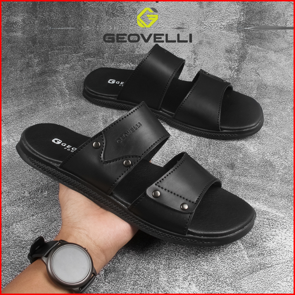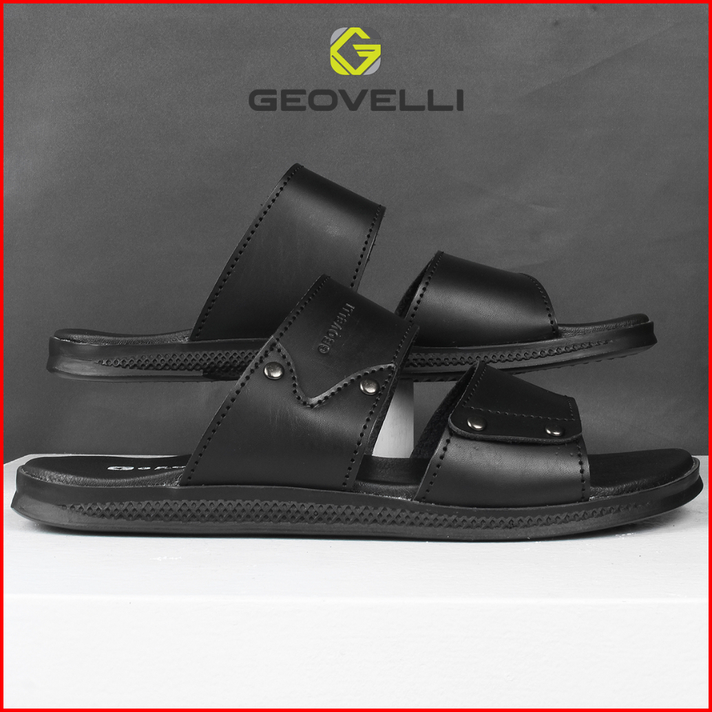 Sandal Pria Casual Geovelli Premium Original Sendal Kulit Cowok Kualitas Lokal - G1985 Hitam