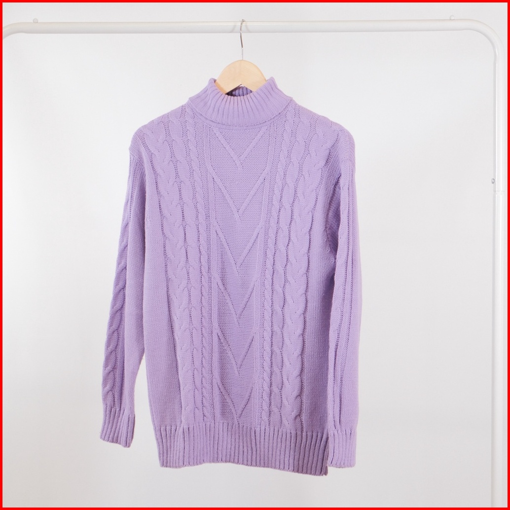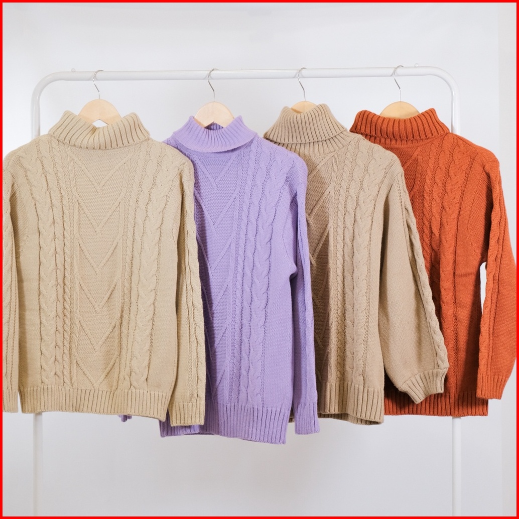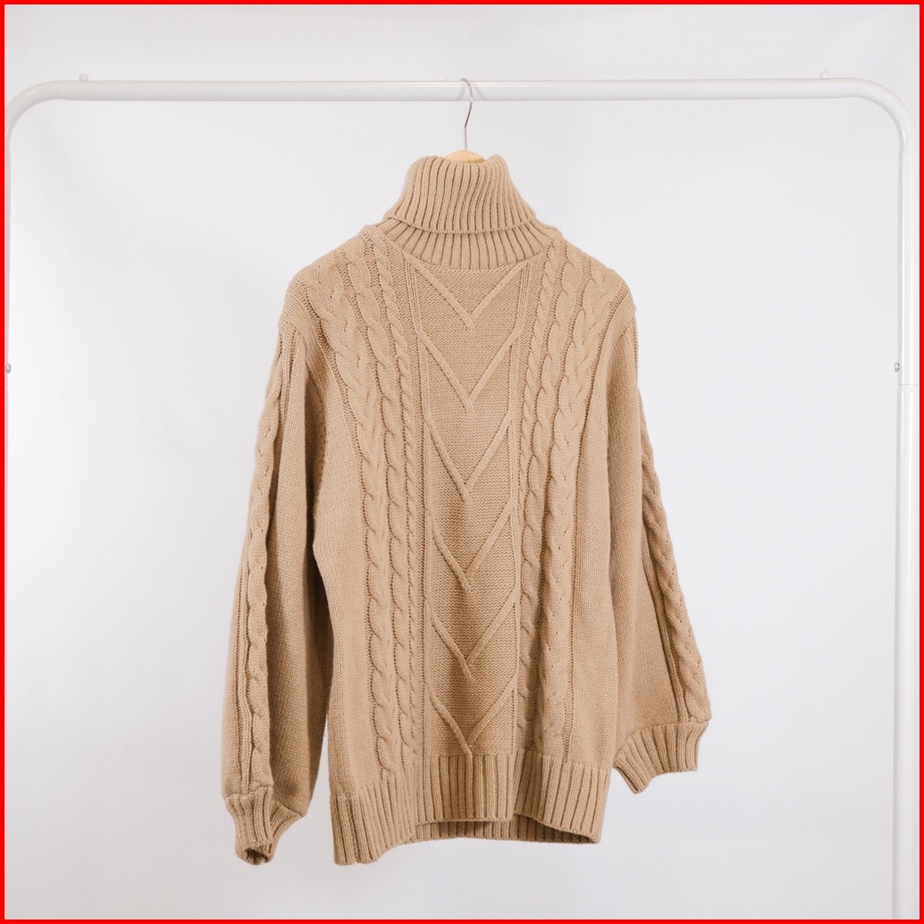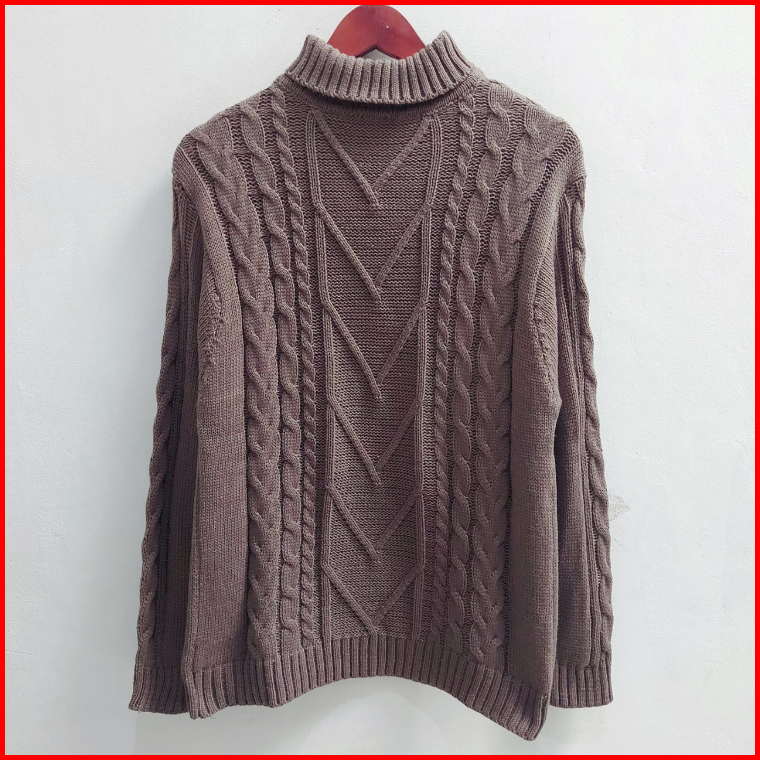 Turtleneck Sweater Rajut Dewasa Oversize Motif Cable Sweater Rajut Oversize Sweater Korean Style