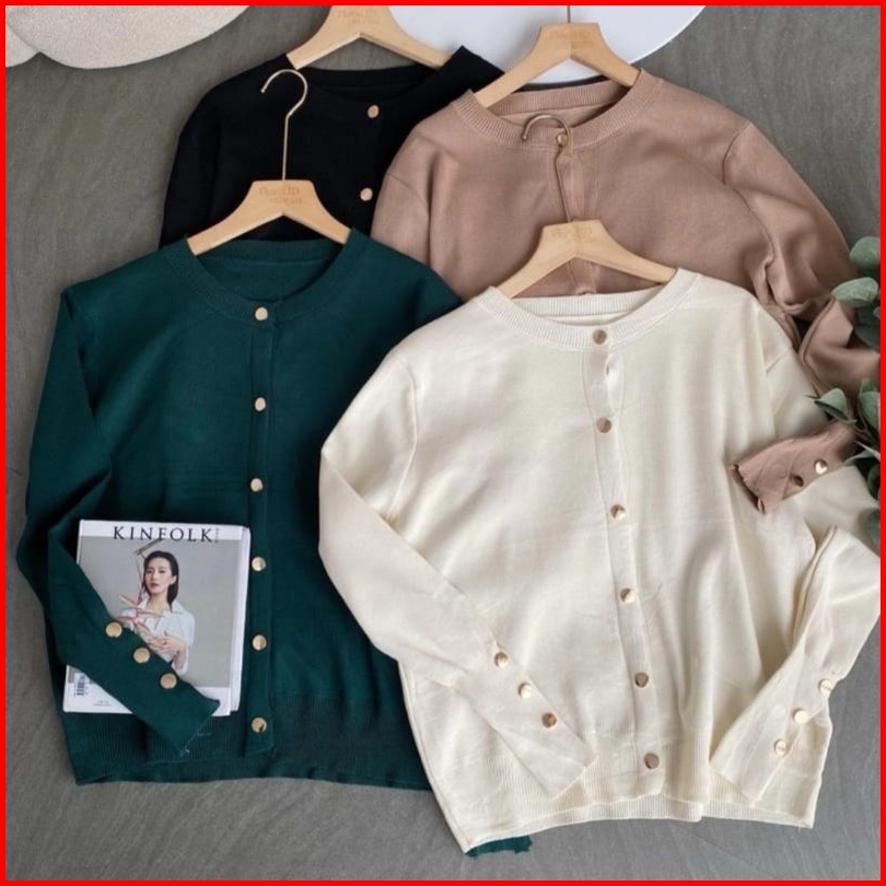 Hectic Yara Button Knit Cardigan - Cardigan Basic Kancing Polos Wanita Bahan Rajut