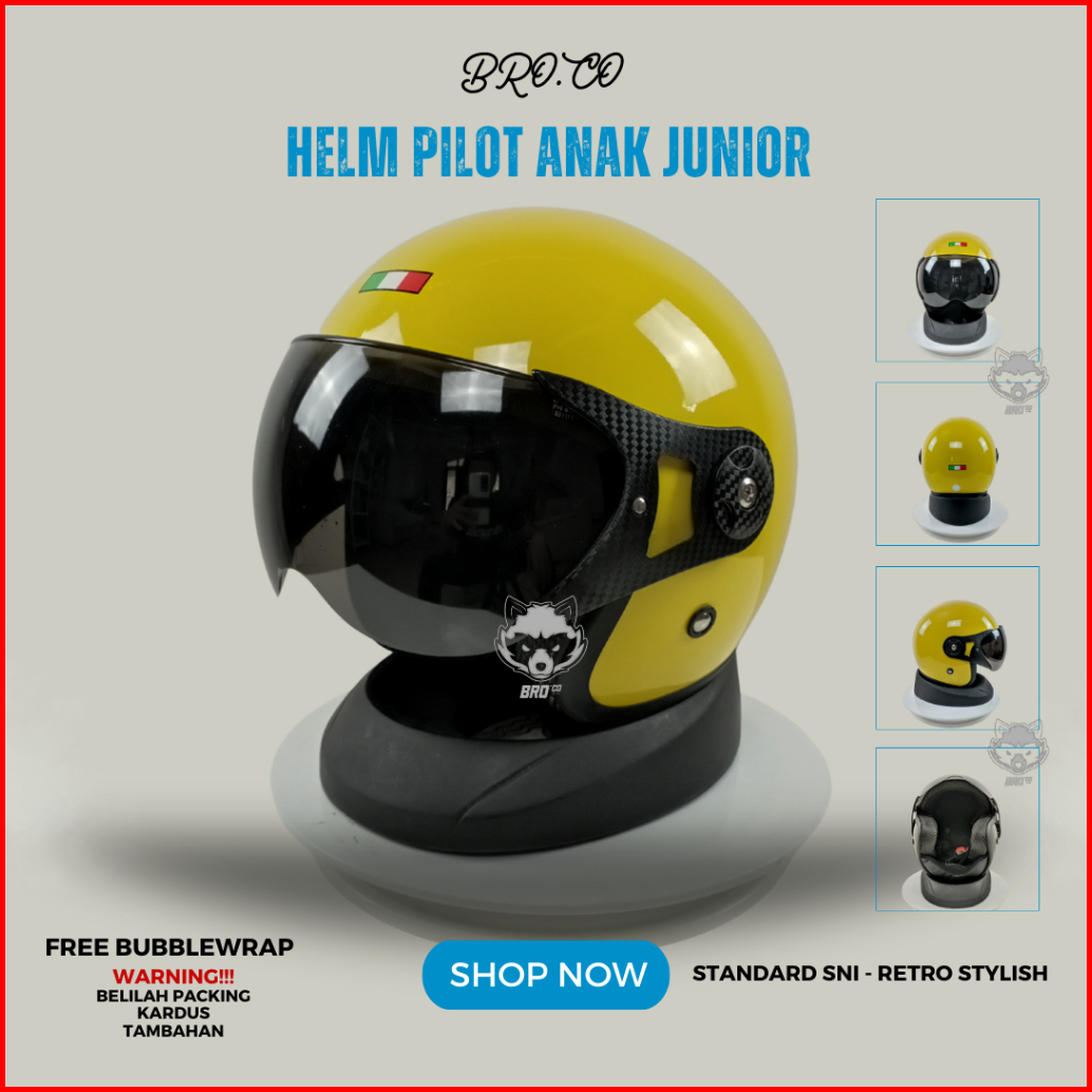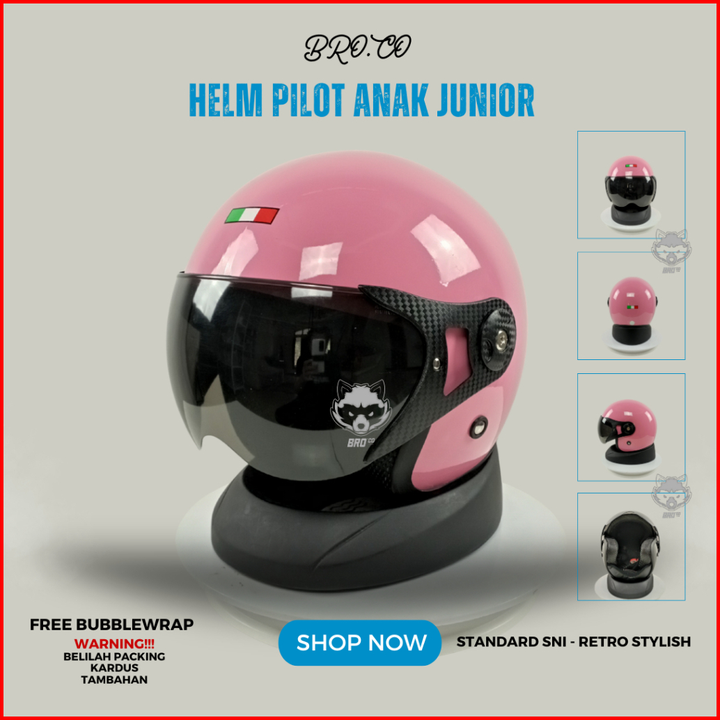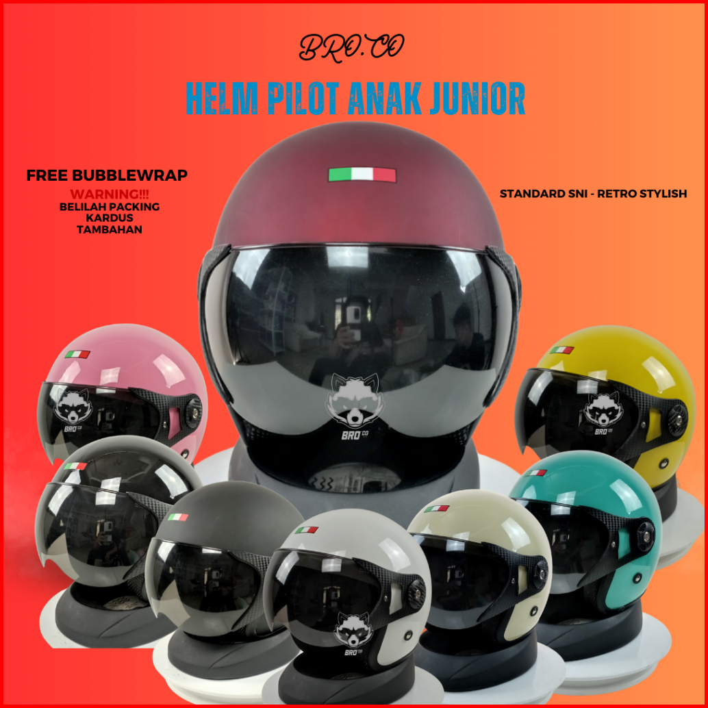 Helm Pilot Retro Italy Anak Anak Junior Half Face Standard Sni Premium Brokids Bro.co Untuk Laki-laki Dan Perempuan Cowo