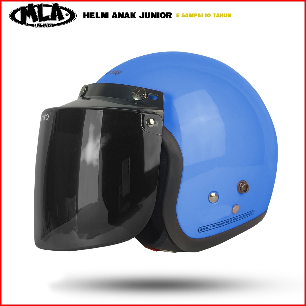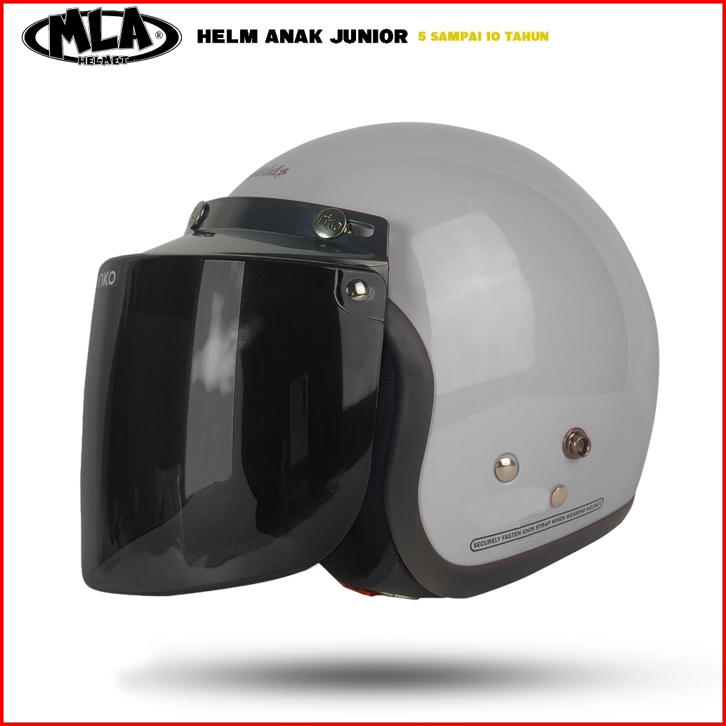 Helm Bogo Retro Anak Full Leher Warna Hijau Mint Free Kaca Sni Helm Bogo Anak Junior Usia 5-10 Tahun Helm Anak Junior Or