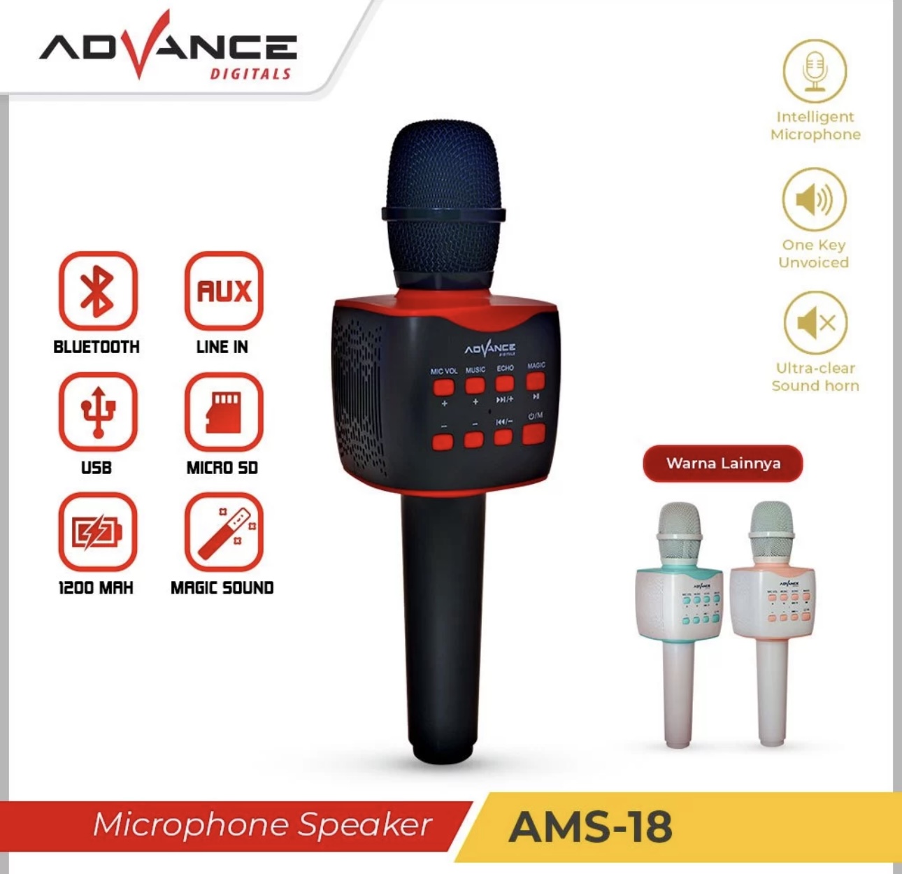 Speaker Microphone Advance AMS-18 / AMS18 Speaker Mic Karaoke Bluetooth - Garansi Resmi 1 Tahun