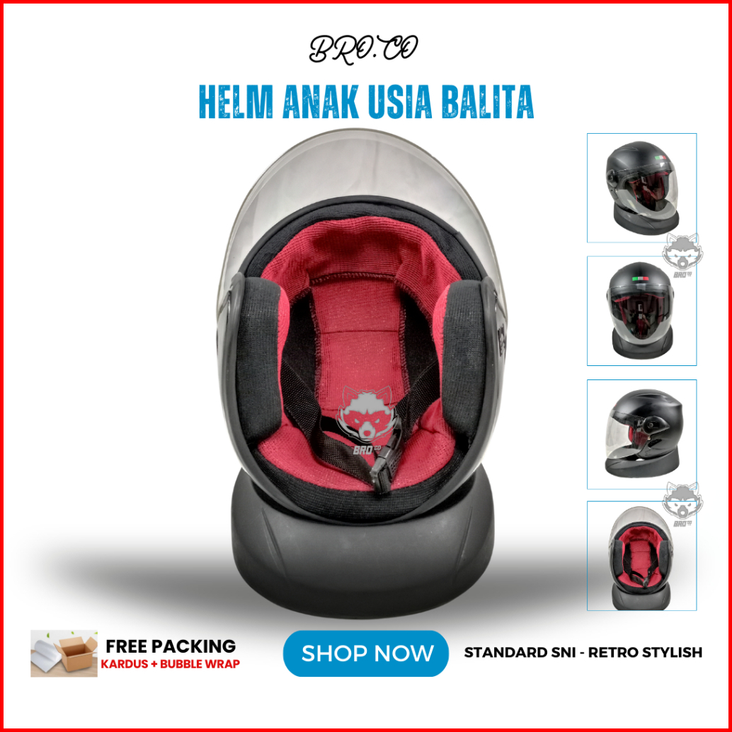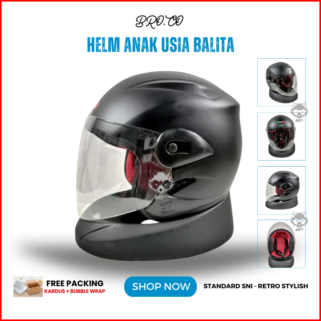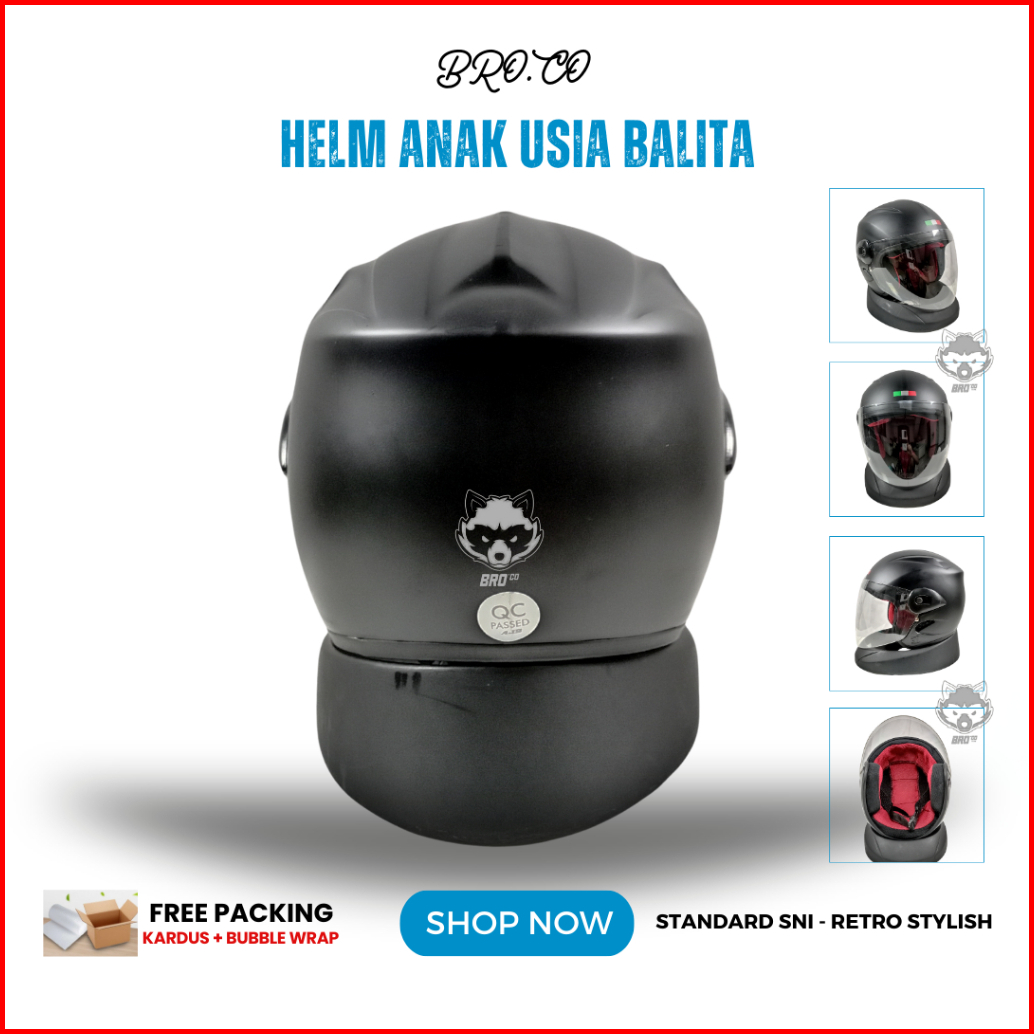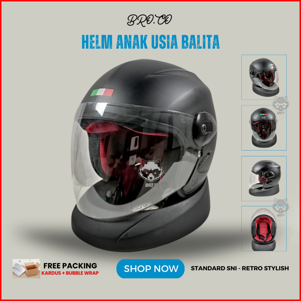 Helm Pilot Retro Italy Anak Anak Junior Half Face Black Hitam Doff Standard Sni Premium Brokids Bro.co Untuk Laki-laki D