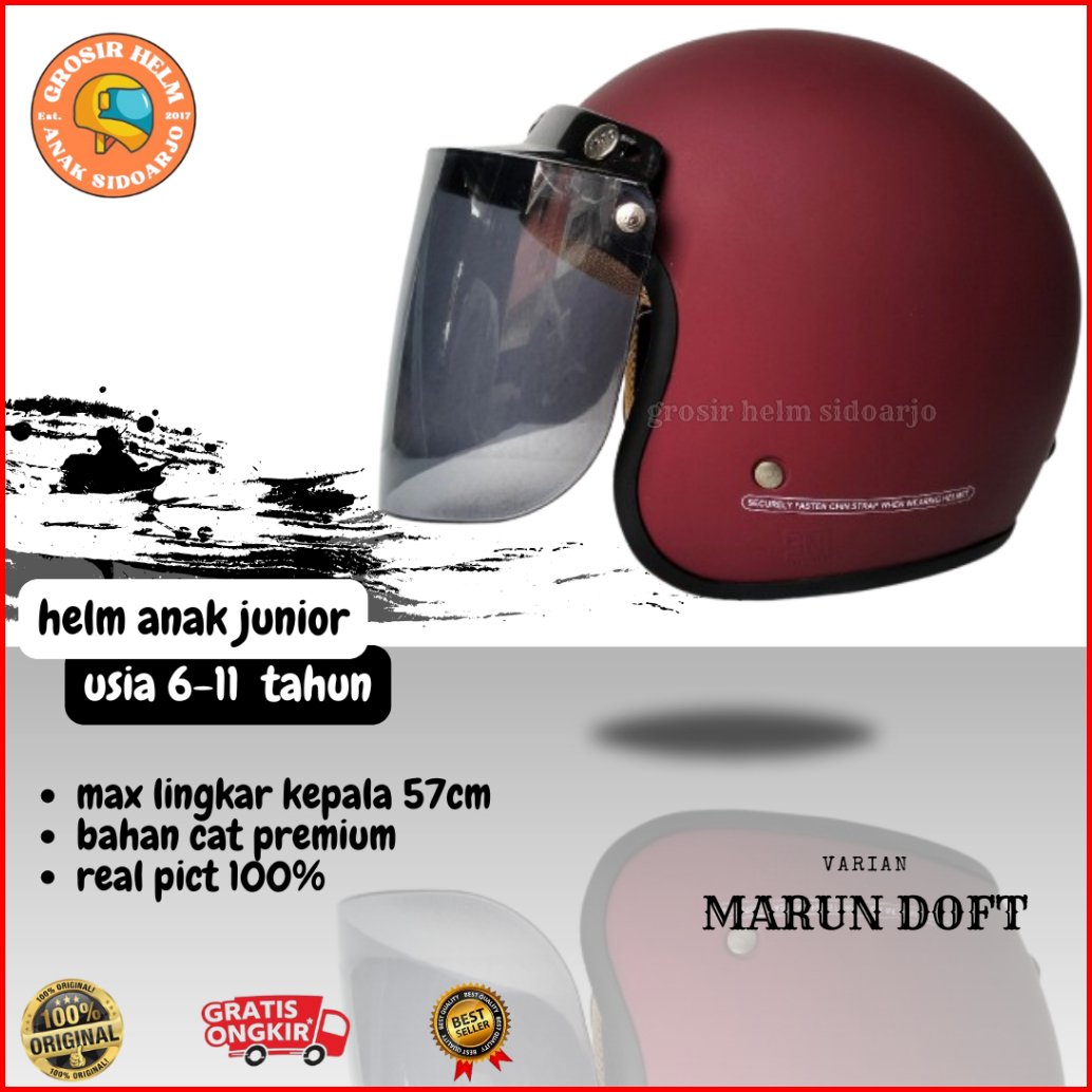 Helm Anak Junior Cat Kaca Flat - Kaca Datar Helm Anak