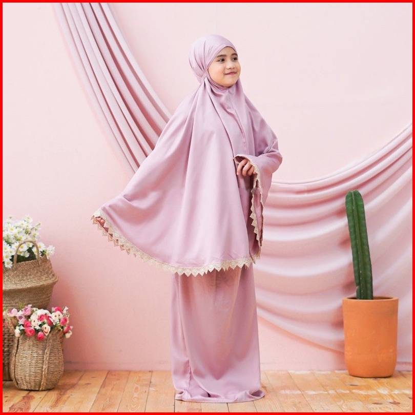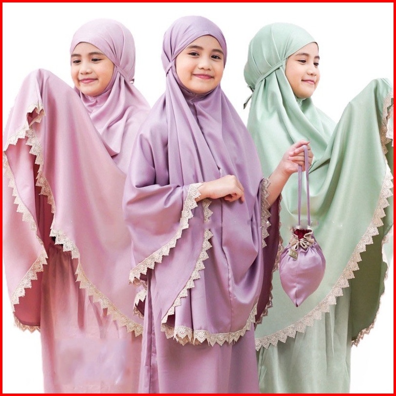 Mukena Anak Perempuan 2in1 Resleting Dagu Usia 7-15 Tahun Model Terbaru