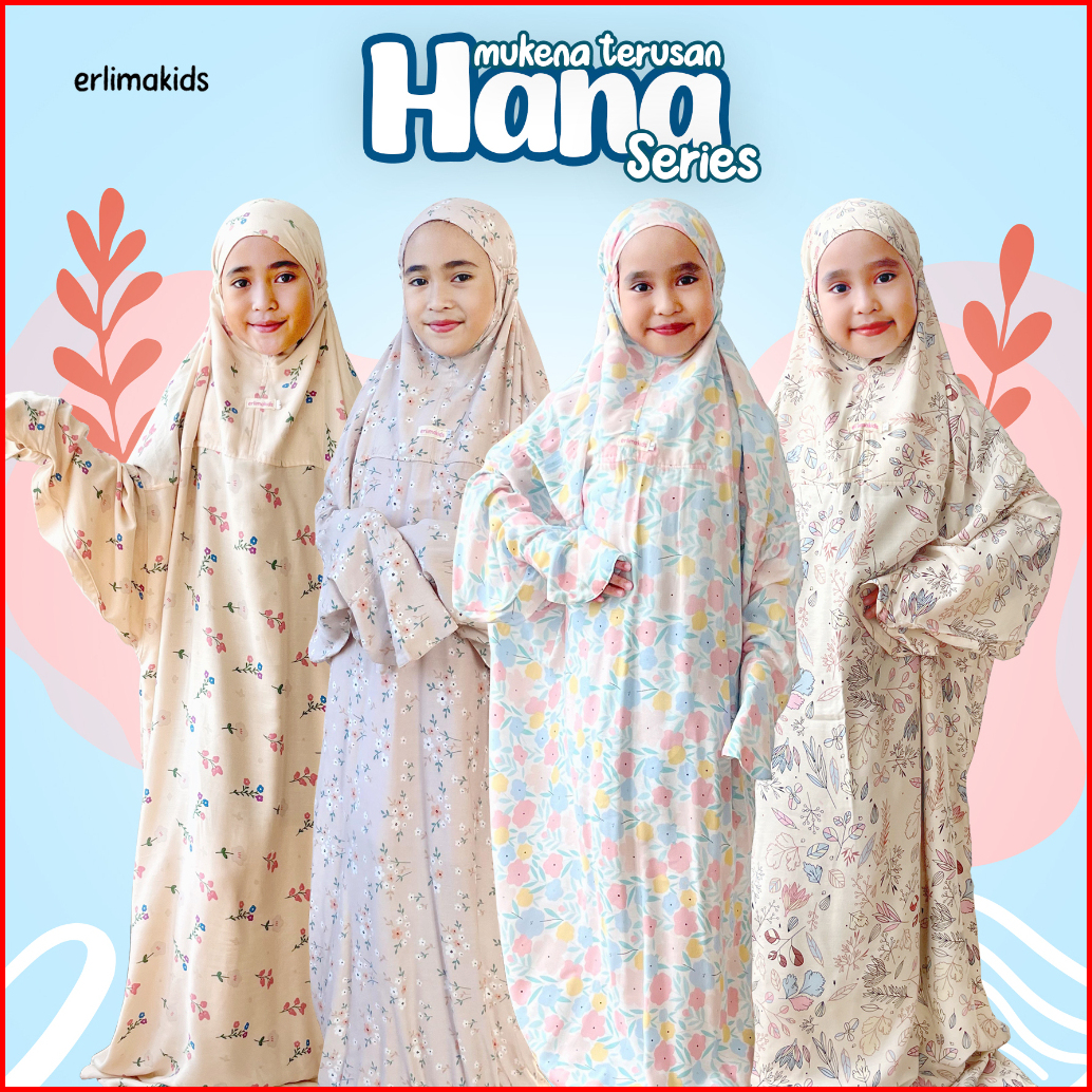 Mukena Terusan Anak Perempuan Erlimakids Usia 7 - 15 Hana Series Banyak Pilihan Motif Cantik Lucu