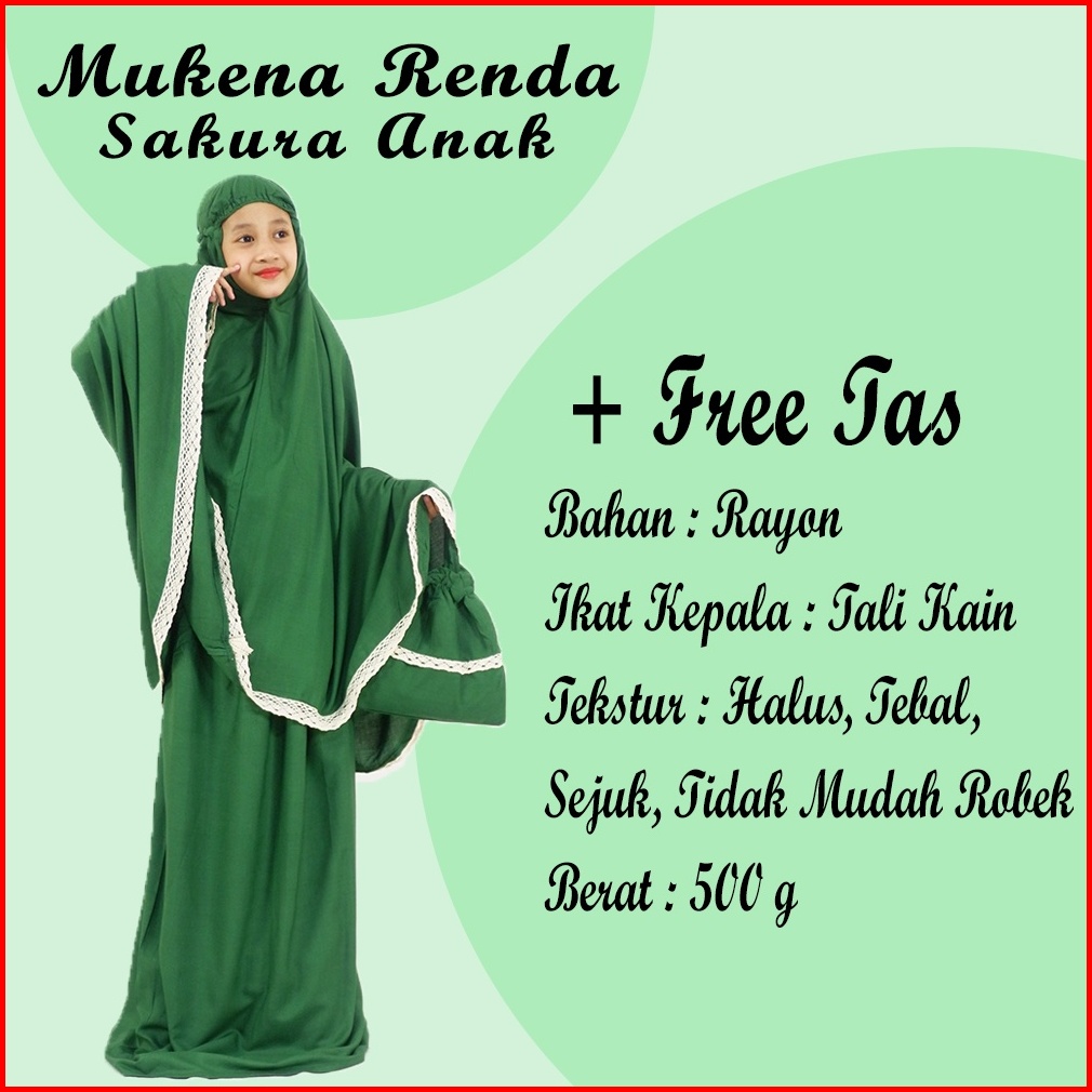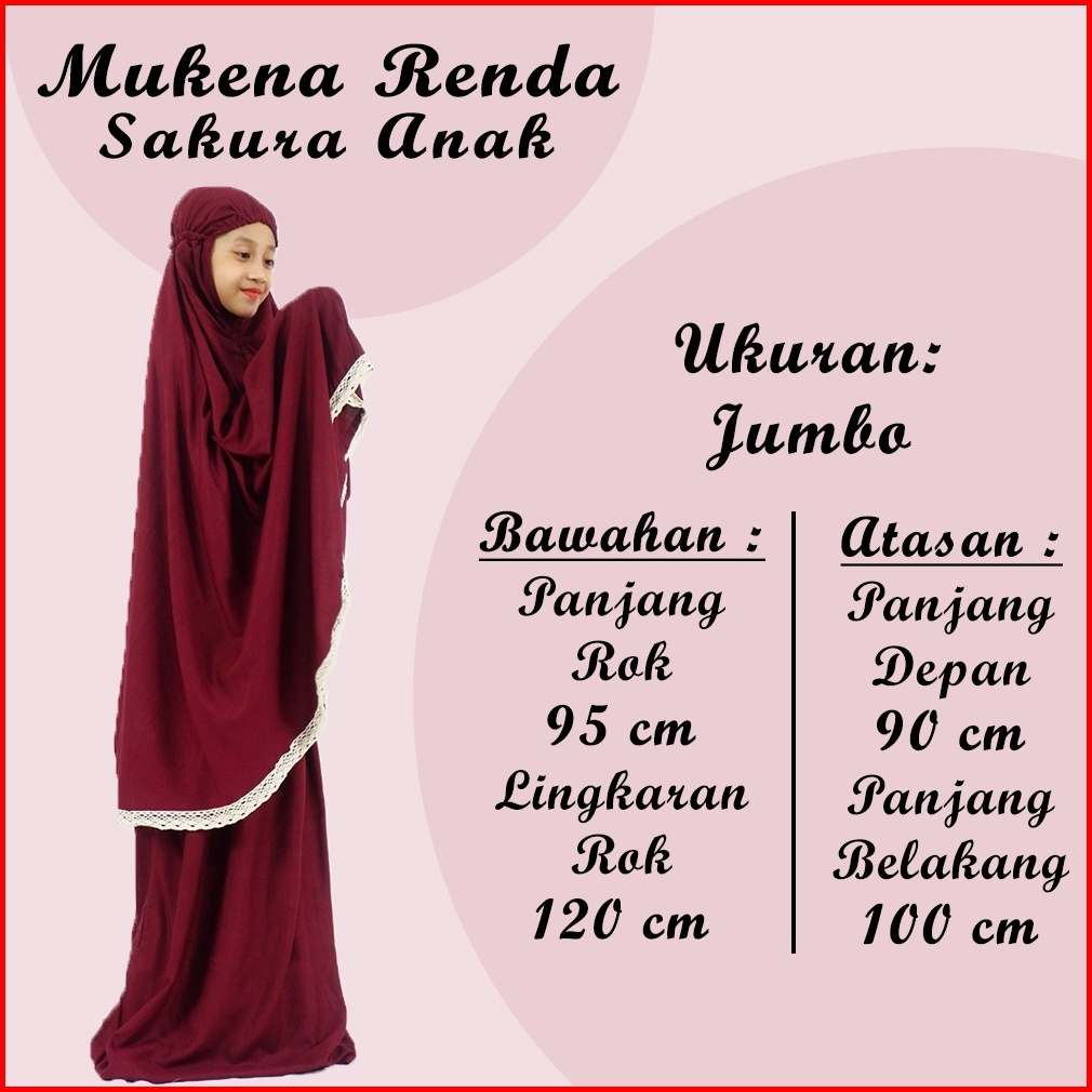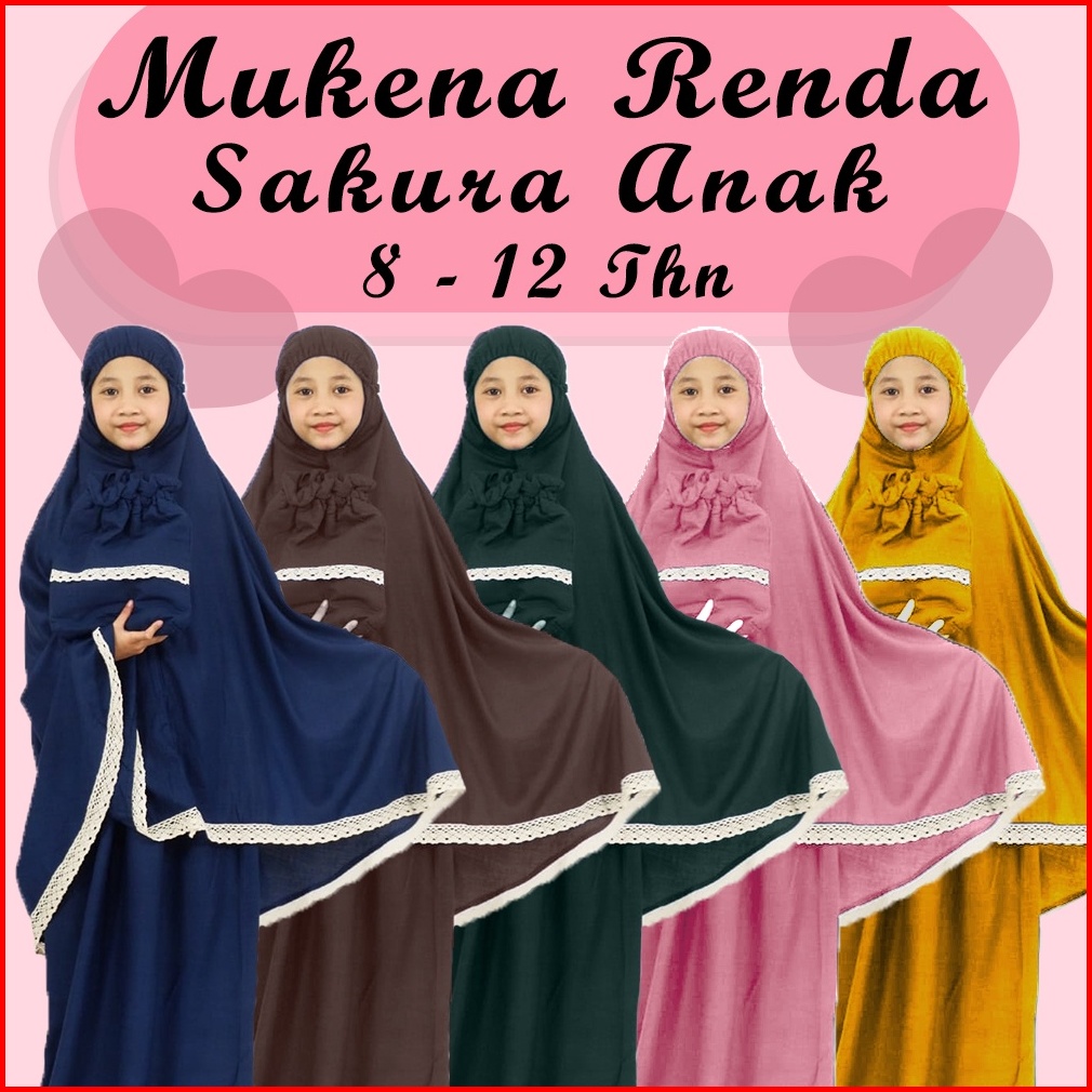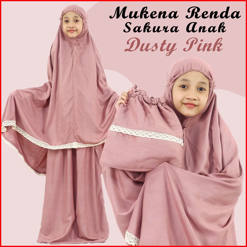 Mukena Renda Sakura Anak - Mukenah Atas Bawah Polos Traveling Jumbo Rayon Premium Bali Murah
