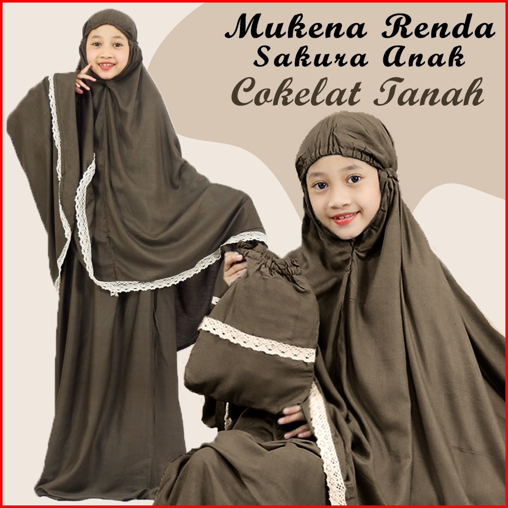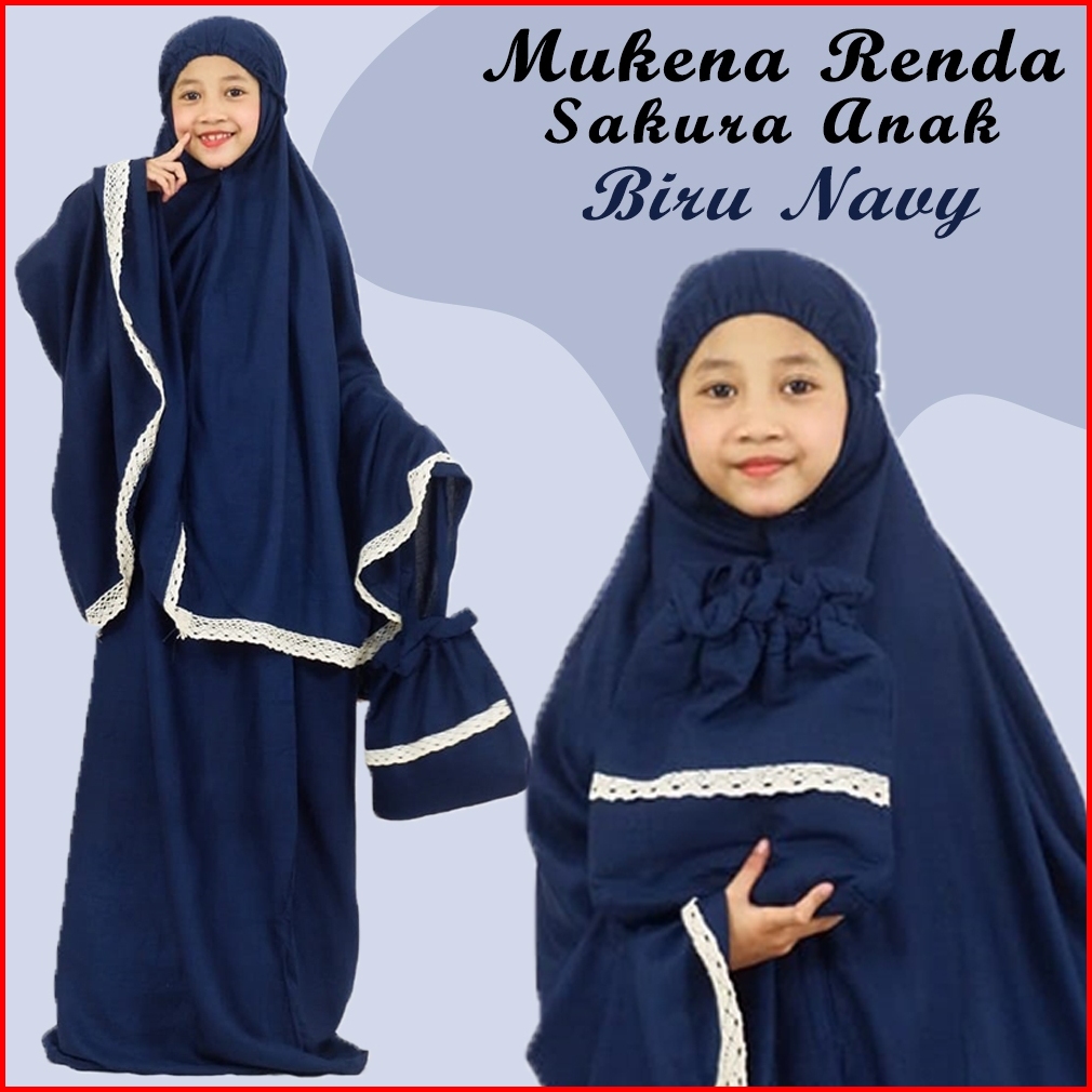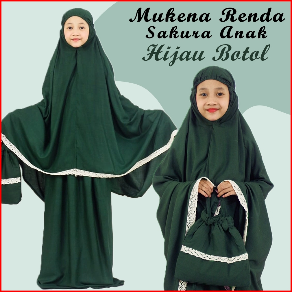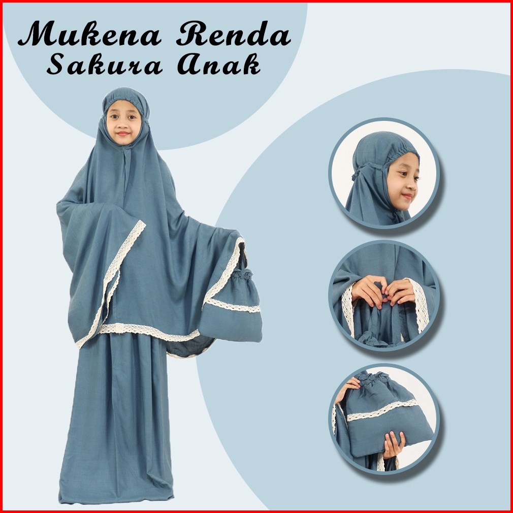 Mukena Renda Sakura Anak - Mukenah Atas Bawah Polos Traveling Jumbo Rayon Premium Bali Murah