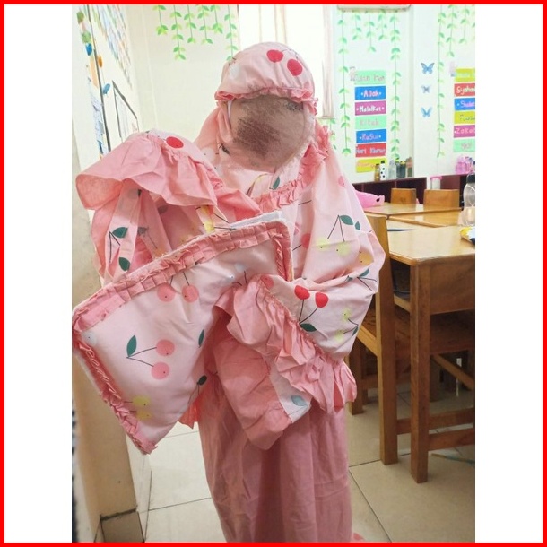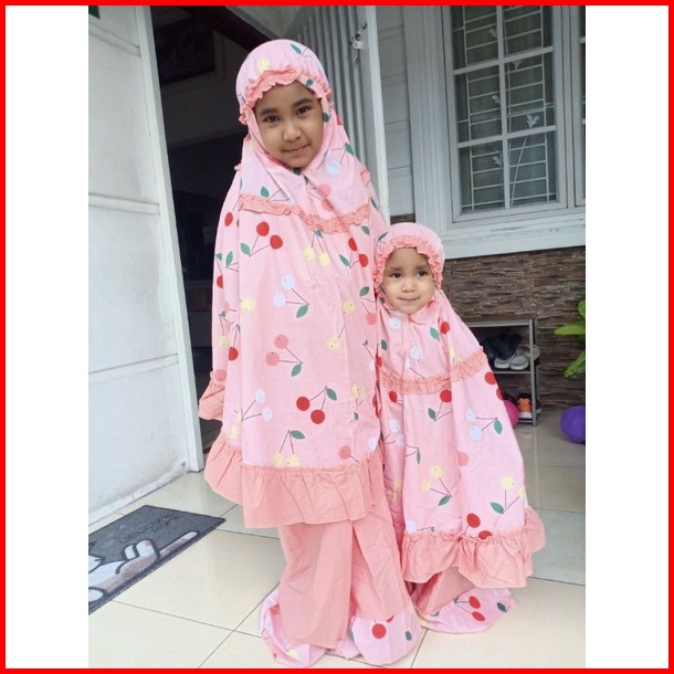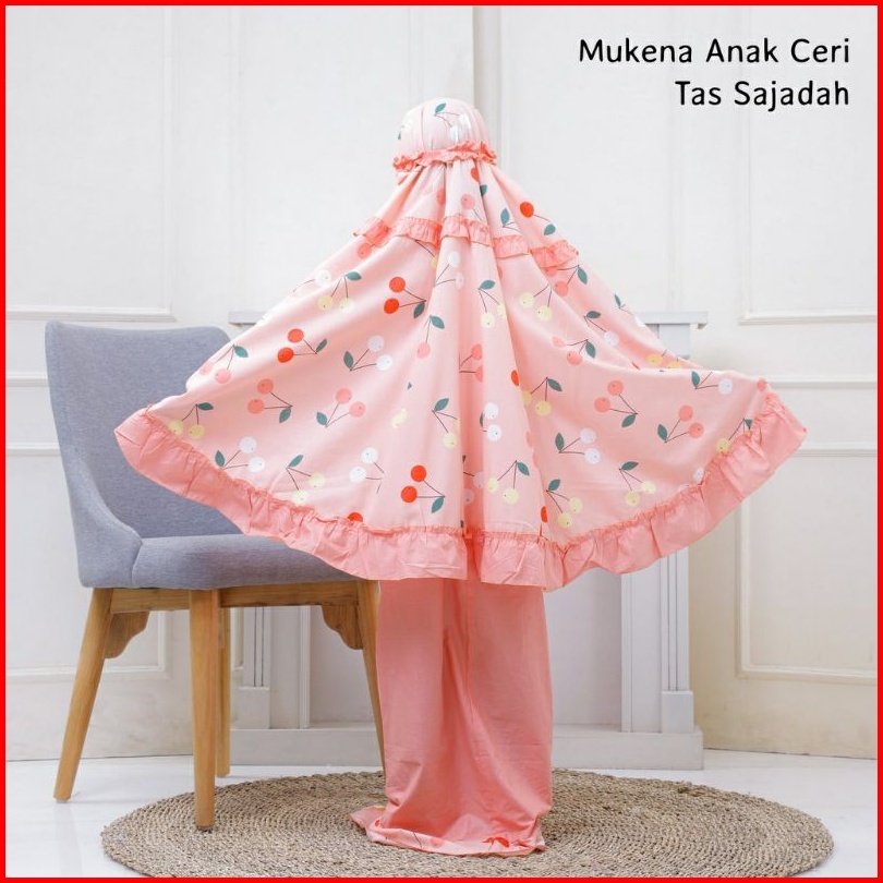 Mukena Anak Tas Sajadah Rayon Premium Motif Rainbow Ceri