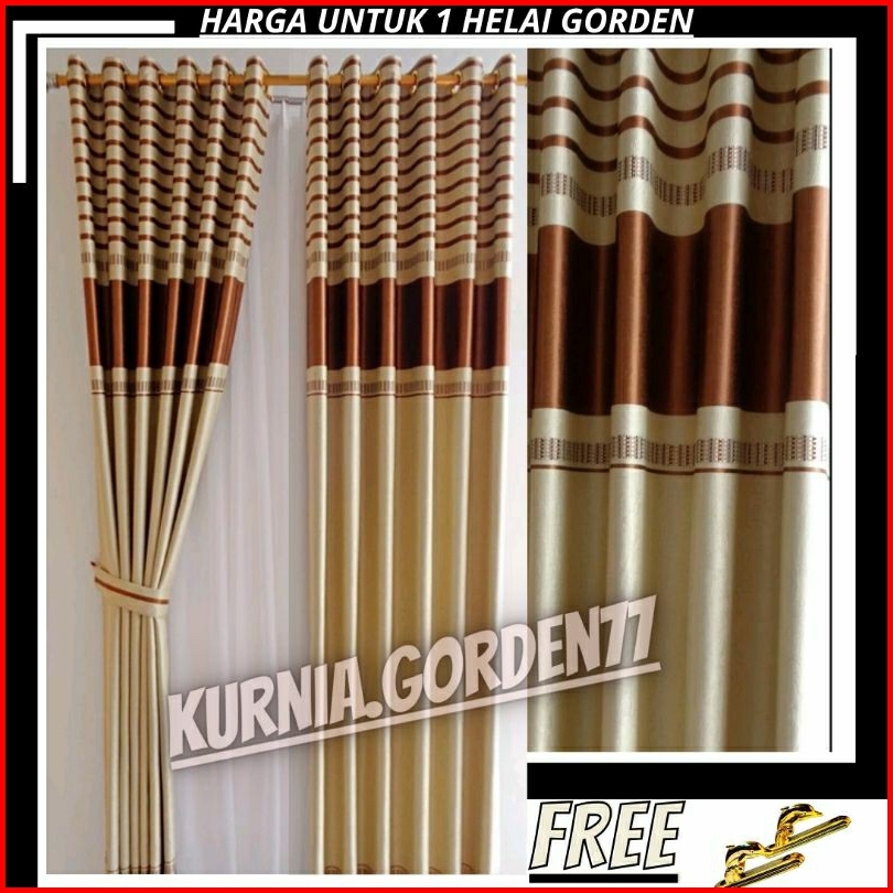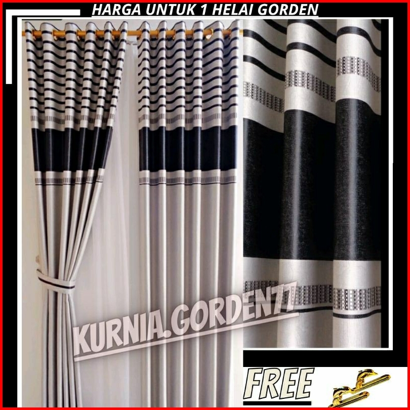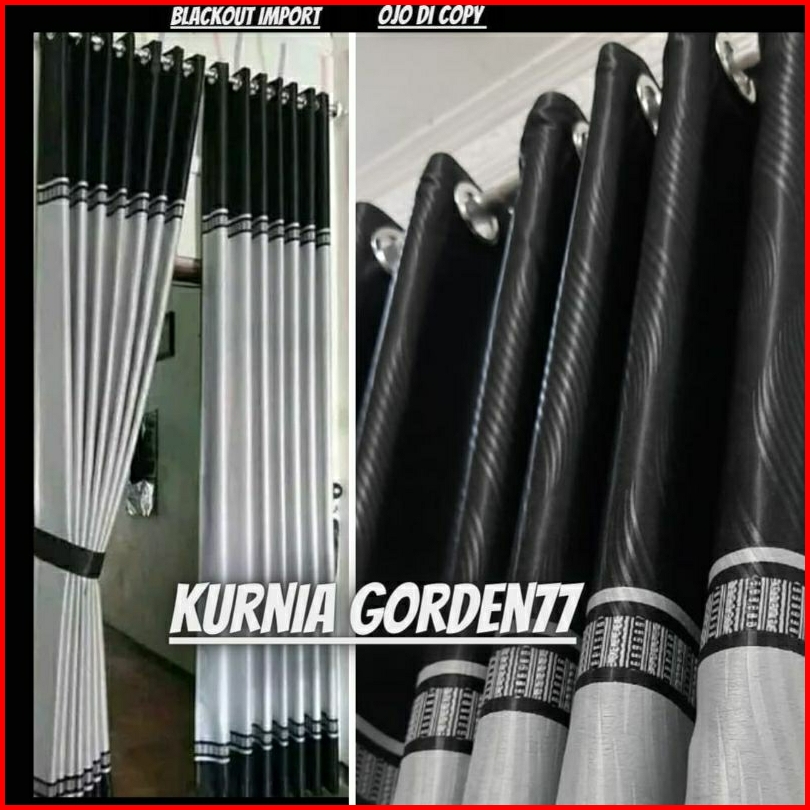 Gorden Jendela Pintu Panjang Pendek Blackout Import Motif Minimalis Garis 6 Gelombang 12 Ring