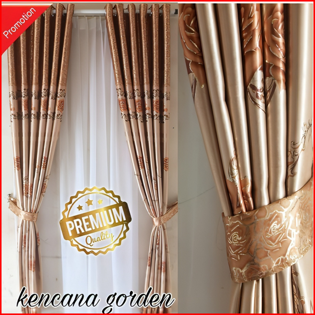 Gorden Smokring Motif Mawar Aesthetic Minimalis Mewah Terbaru Gordyn Pintu Tirai Jendela Free Tali
