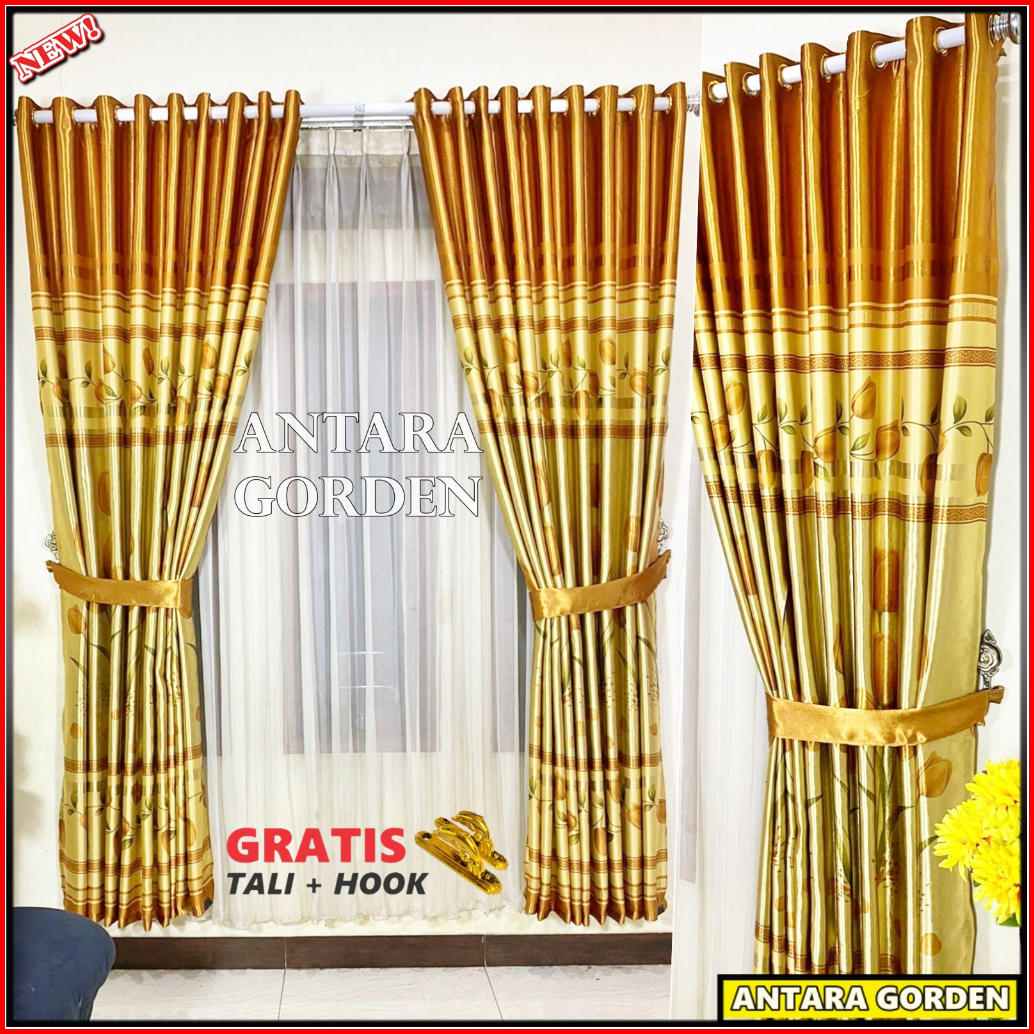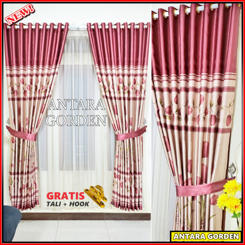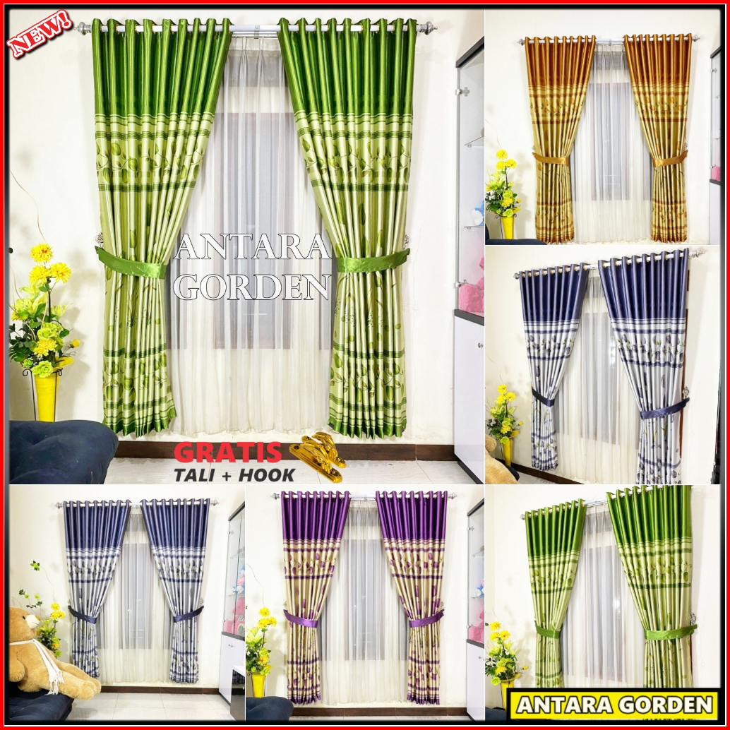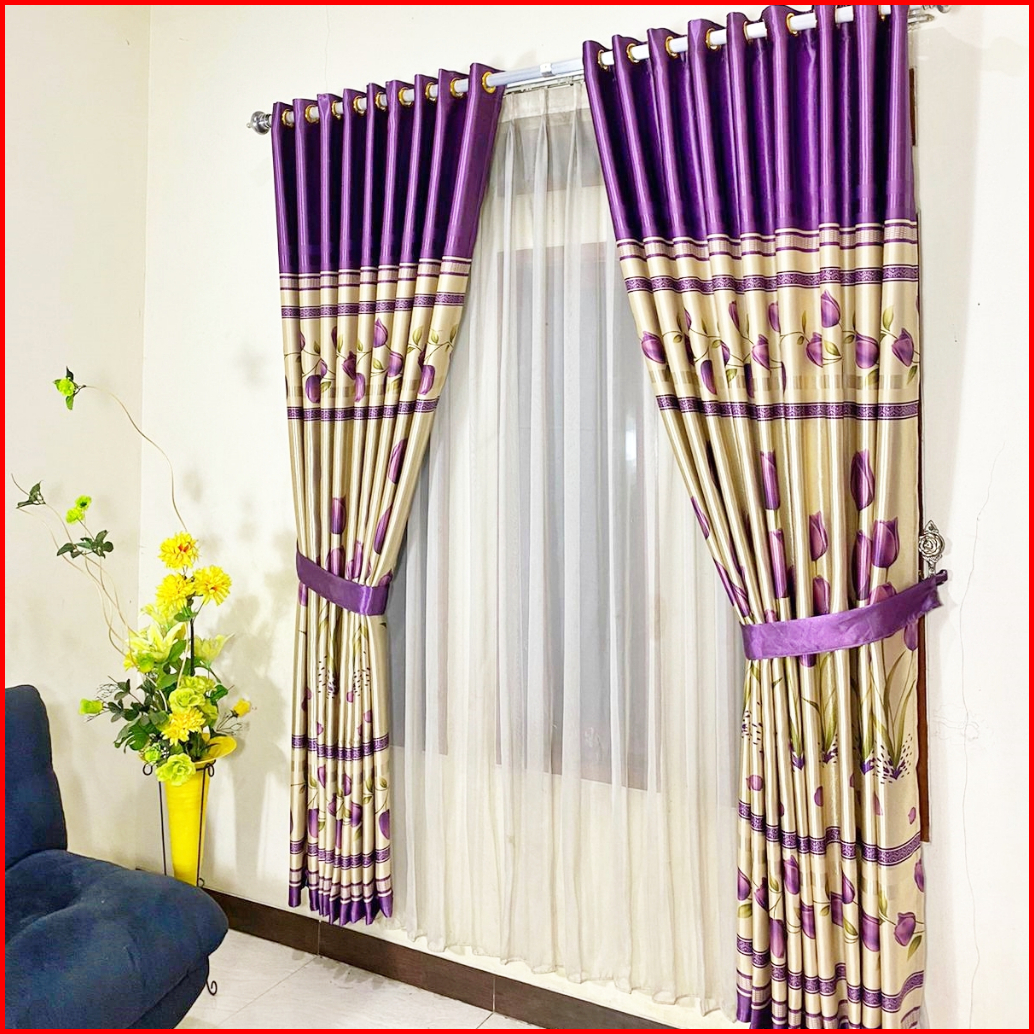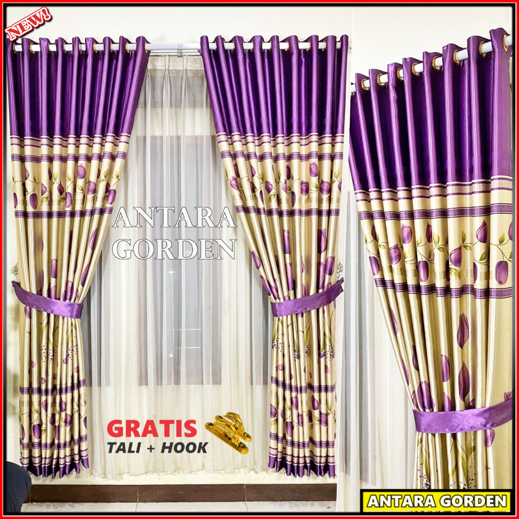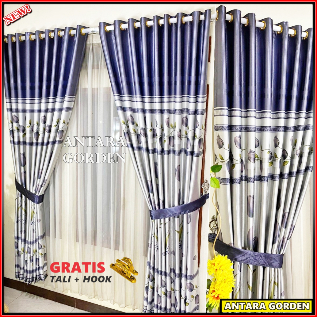 Gorden Jumbo Lebar 2 Meter Blackout Motif Bunga Tulip 10 Gelombang Panjang 230cm Ring Dan Silver