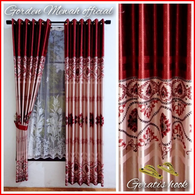 Gorden Jendela Kamar Motif Tulip Mewah Bahan Kain Blackout Import Tebal Model Semokring L 140 Cm T 230 Cm Terbaru