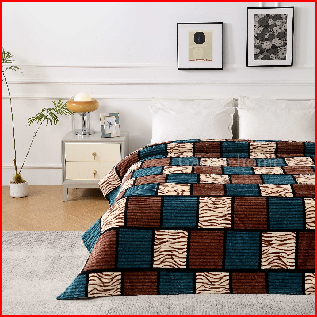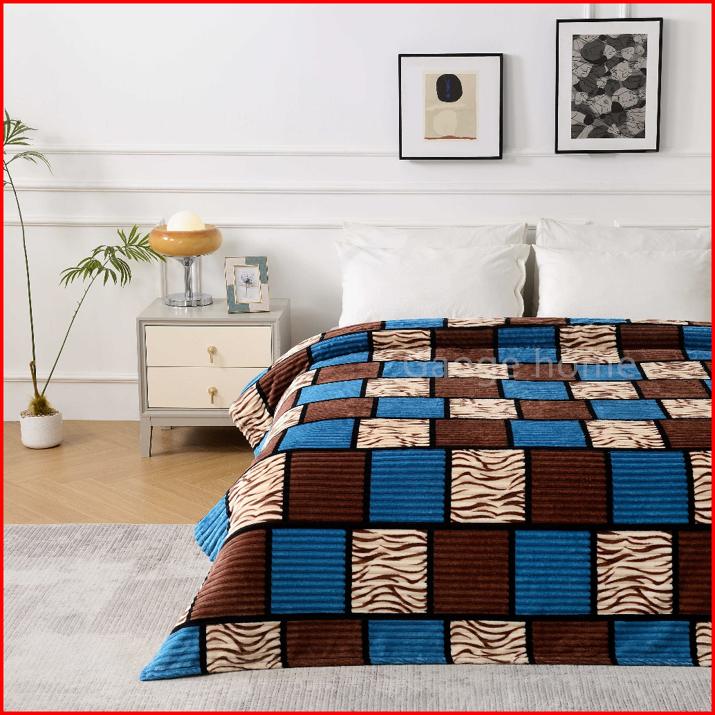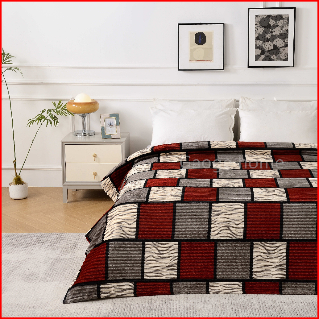 Selimut Bulu Halus Salur Kotak Printing 180 X 200 Motif Terbaru Warna Warni