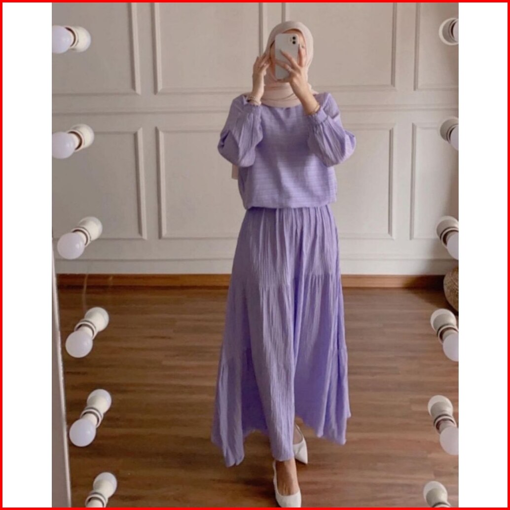 Asqina Batik - One Set Sakura Setrok Premium Baju Setelan Wanita