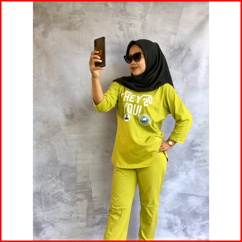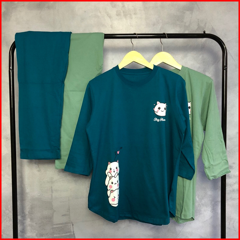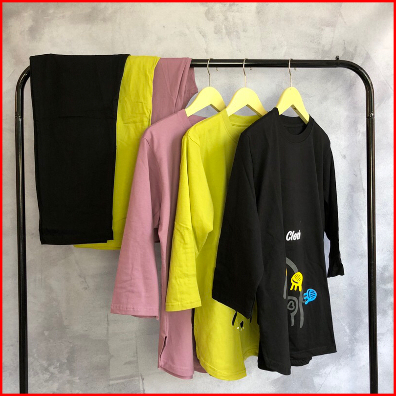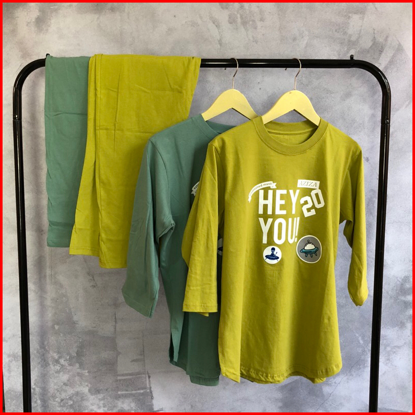 Setelan Kaos Model Standar Setelan Modis Kekinian Bahan Cotton Combed 24s Warna Hitam Kuning Lemon Pink Sage Thel