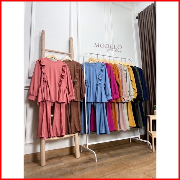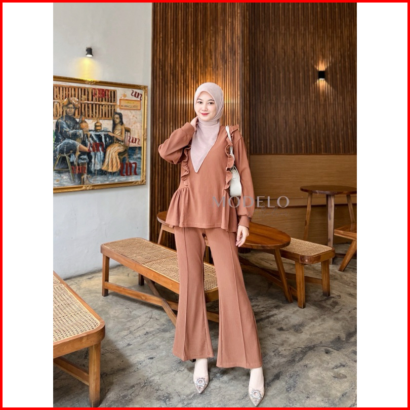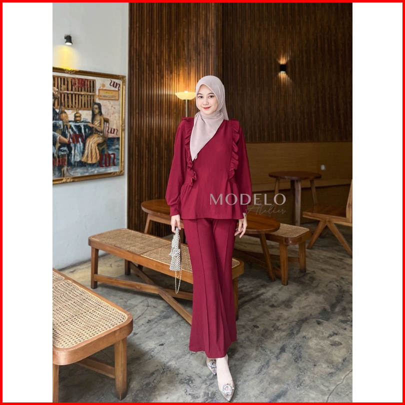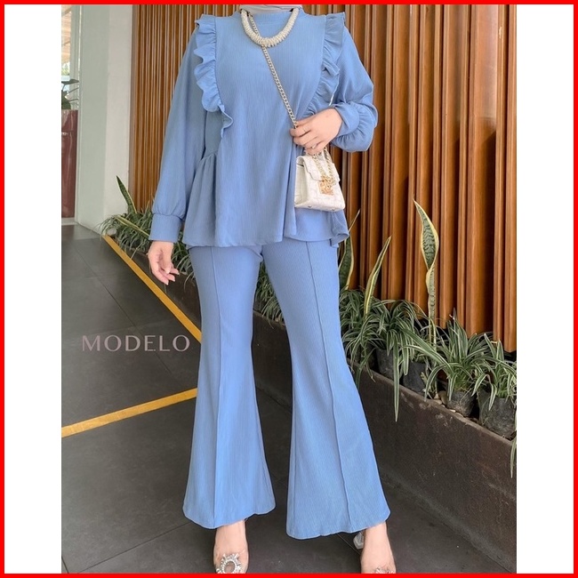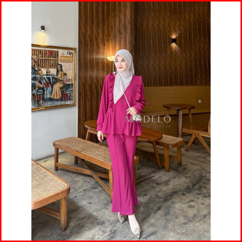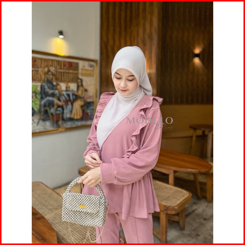 Mia Ruffle Pleats Set - One Set Murah Setelan Plisket Kerja Guru Modelo Knit Set Jumbo Cutbray