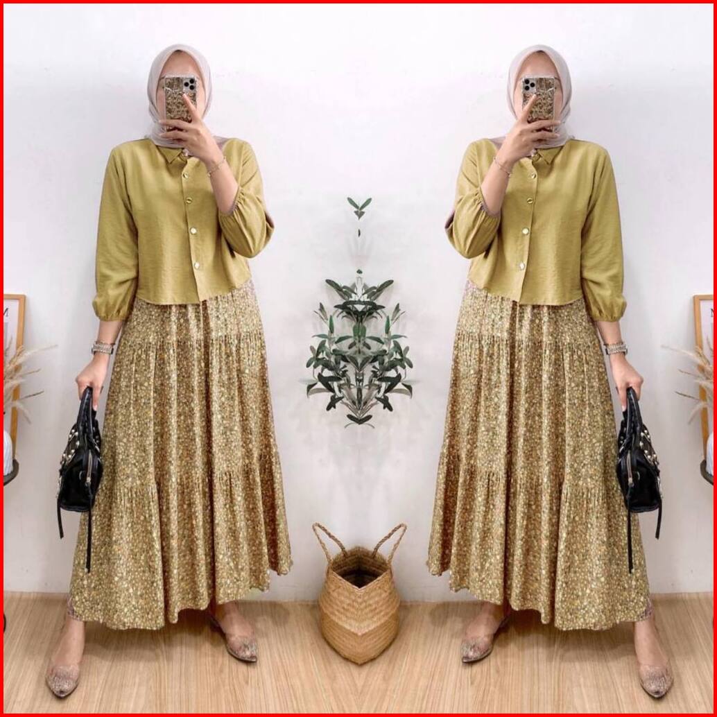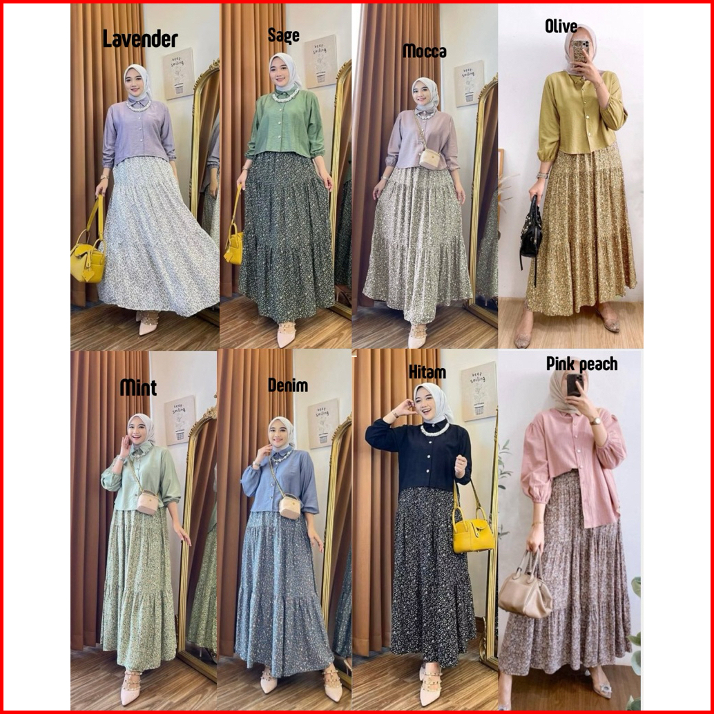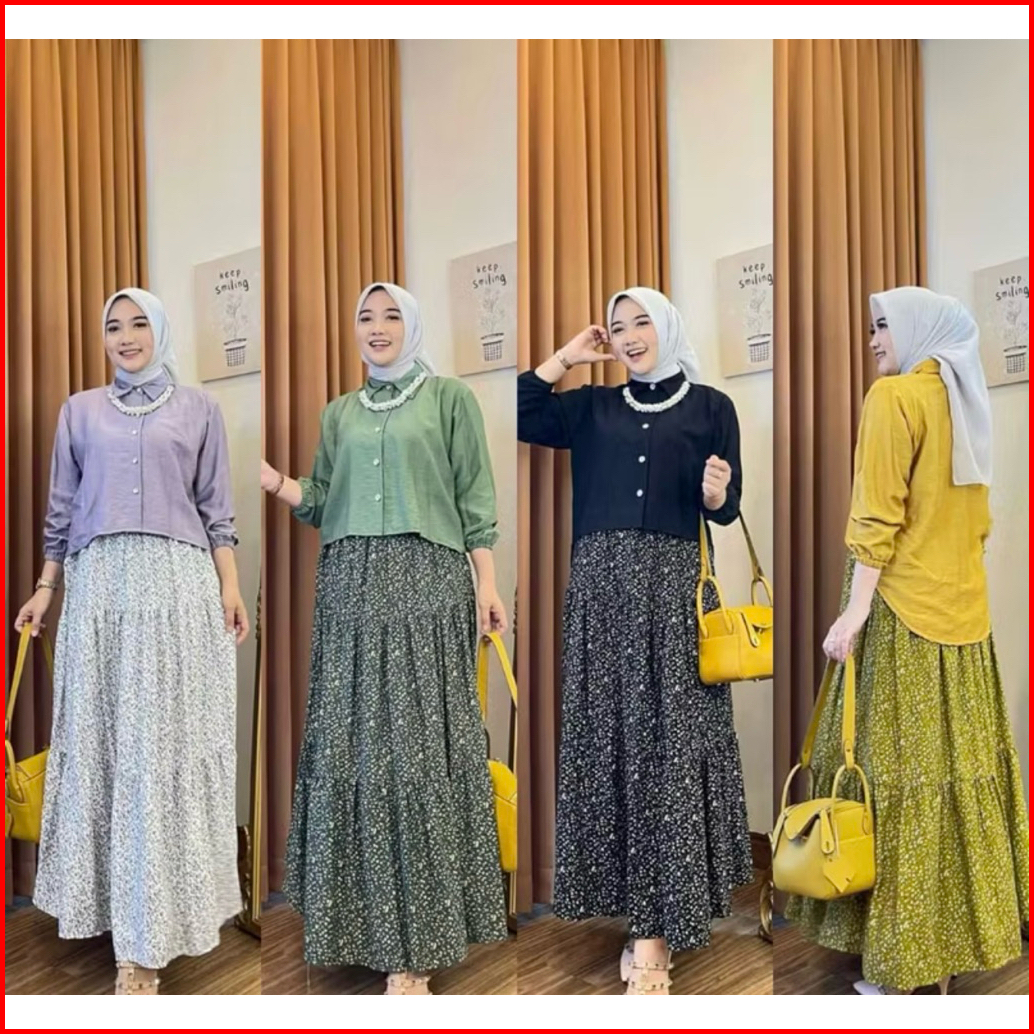 Oneset Sofya Flower Oneset Terlaris Kekinian Rok Plisket Wanita Setelan Polo Linen Ld 110cm