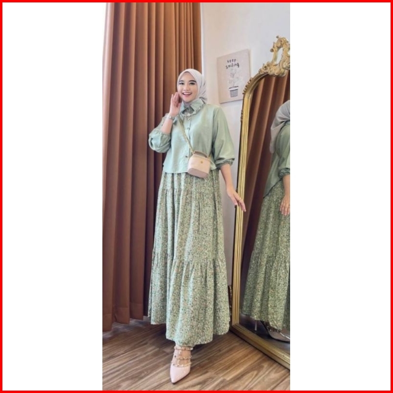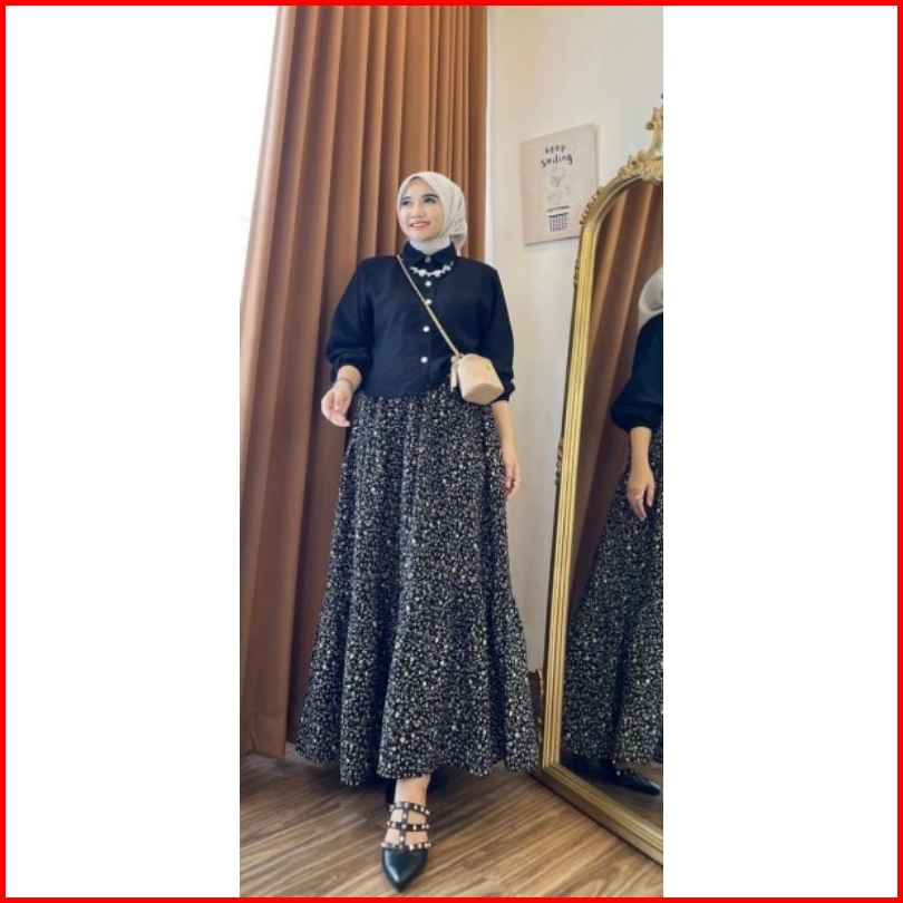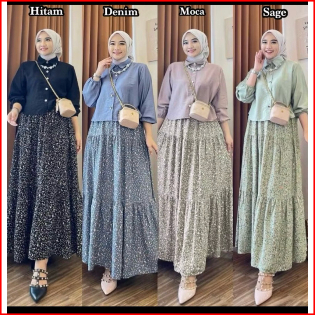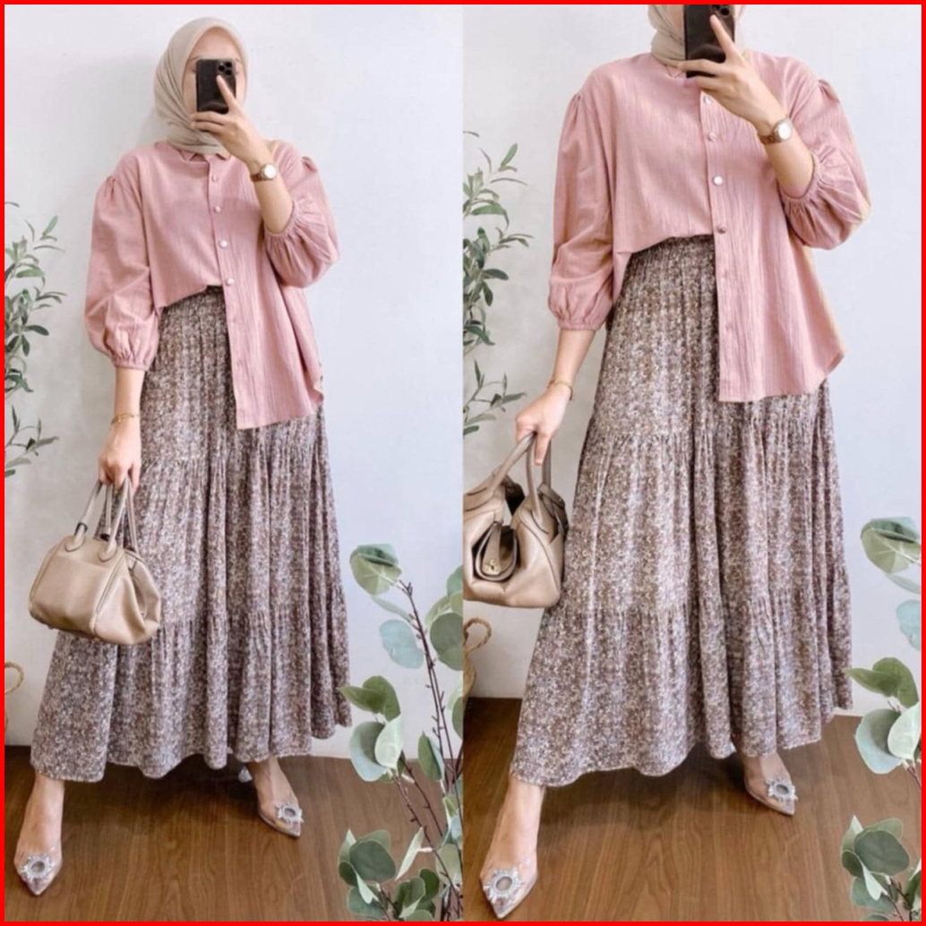 Oneset Sofya Flower Oneset Terlaris Kekinian Rok Plisket Wanita Setelan Polo Linen Ld 110cm