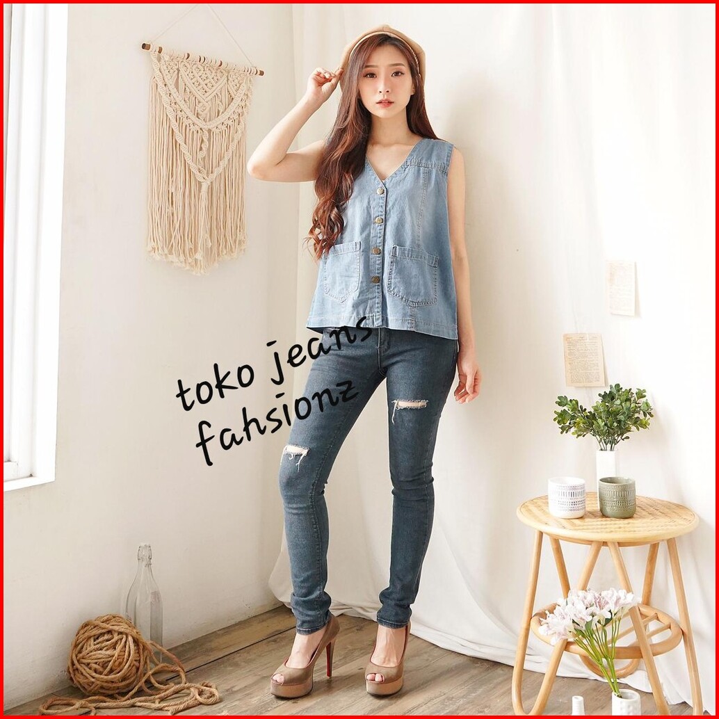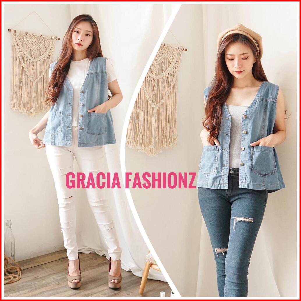 Rompi Jeans Wanita Blazer Jeans Wanita Luaran Wanita