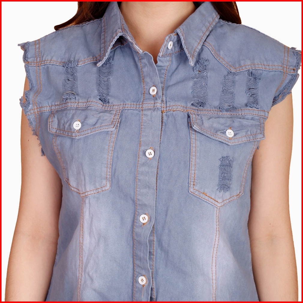 Okechuku Daisy Rompi Jaket Jeans Wanita Vest Denim Kemeja Jeans