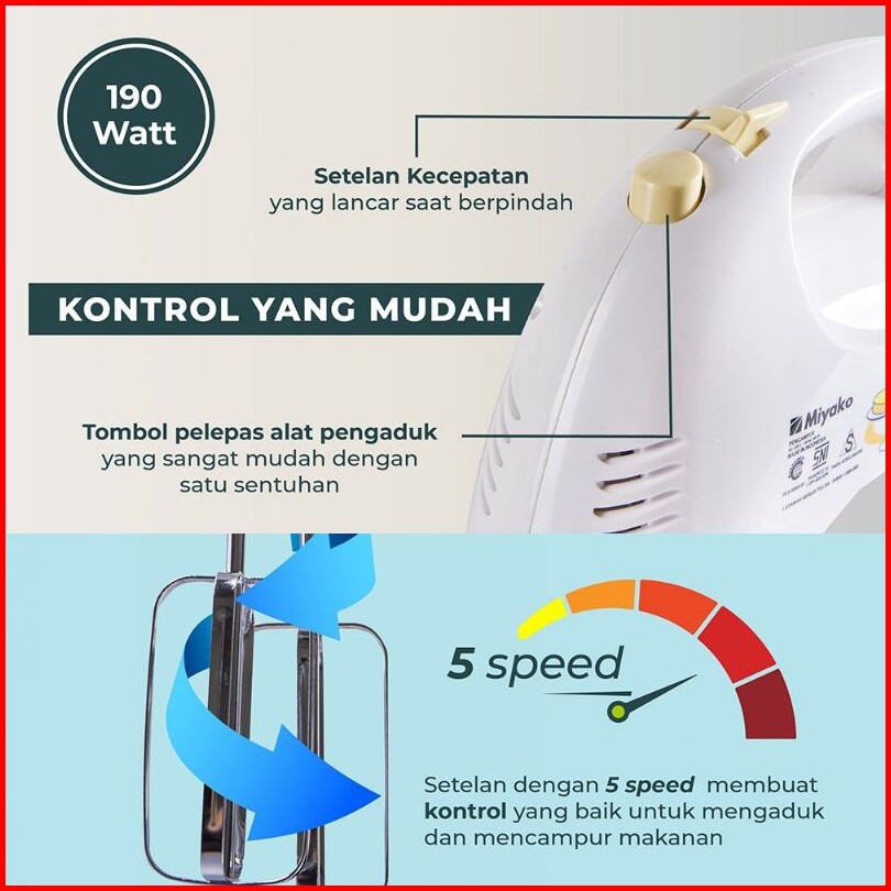 Miyako Hand Mixer Food Grade 5 Tingkat Kecepatan - Hm-620 Hm 620 Hm620
