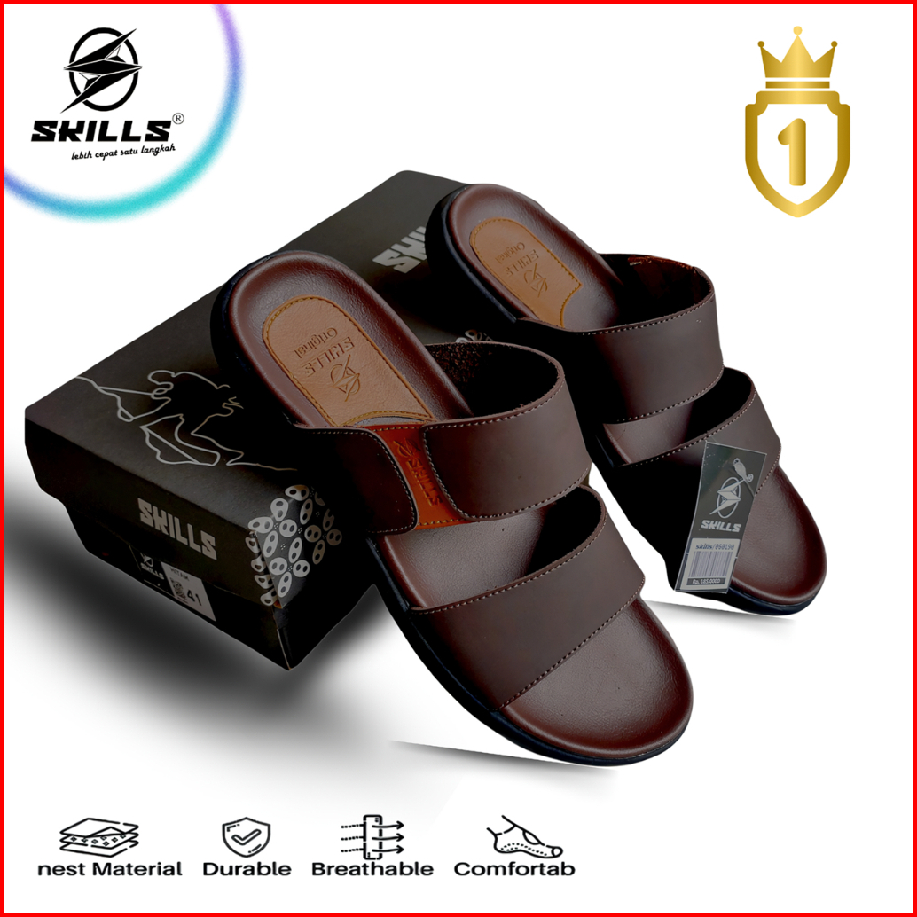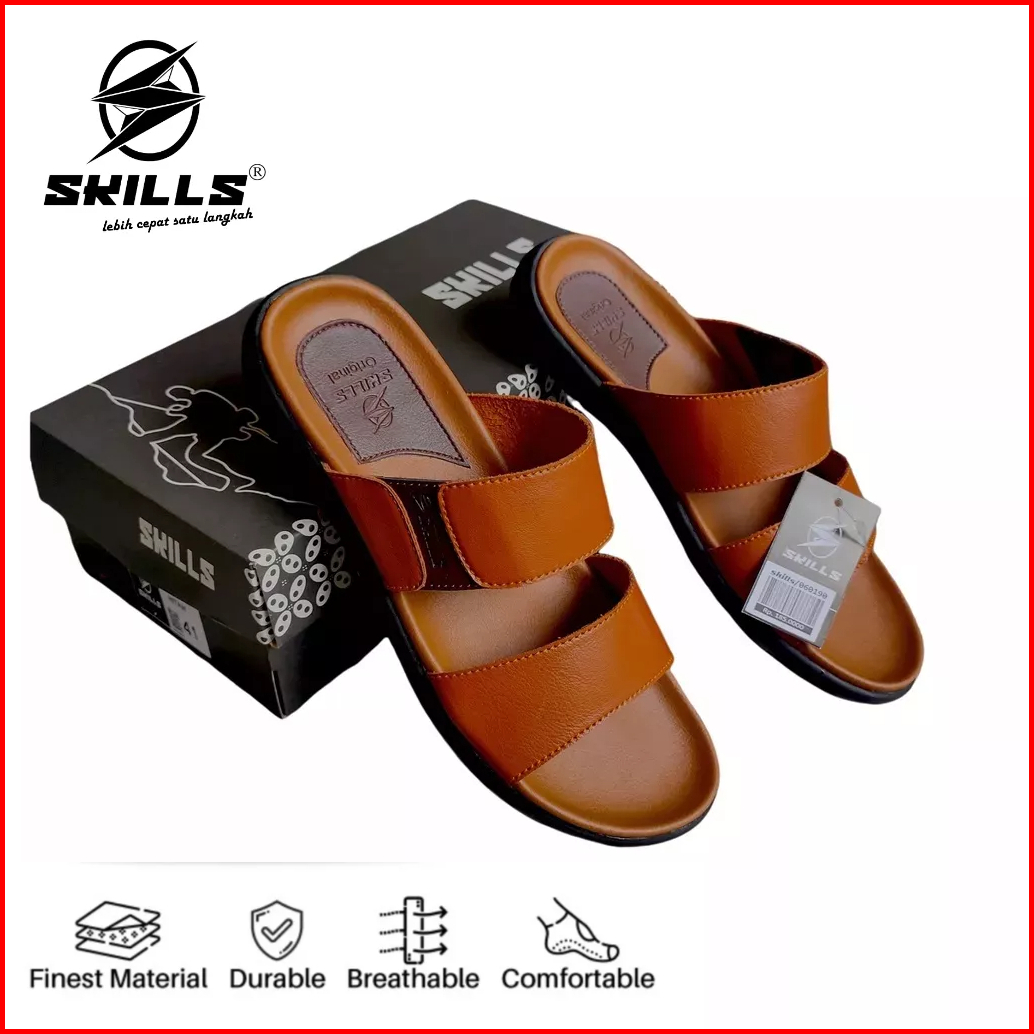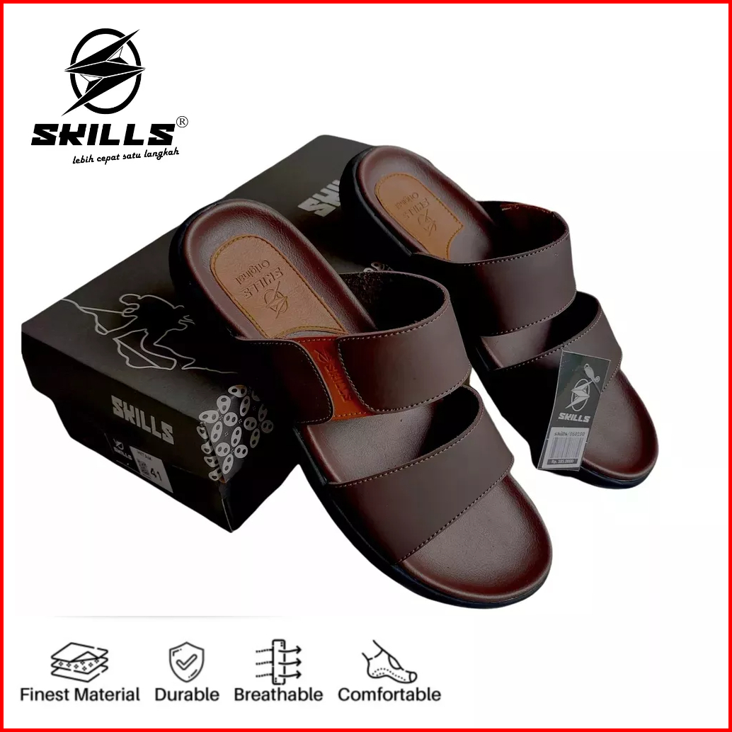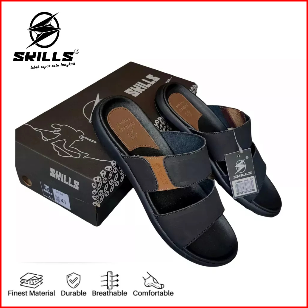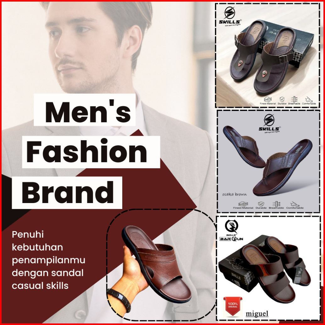 Skills Barqun Miguel - Sandal Pria Casual Sandal Kulit Sandal Slop Strap Leather Premium