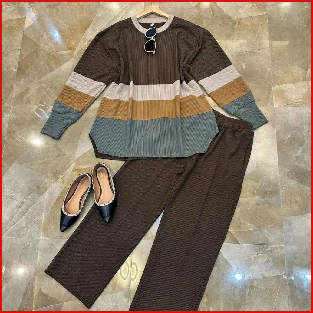 New Salsa Set Bahan Caramell Knitt Terbaru Fashion Setelan Wanita Atasan Dan Celana Kekinian Adem Dan Nyaman Mf