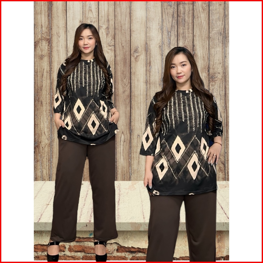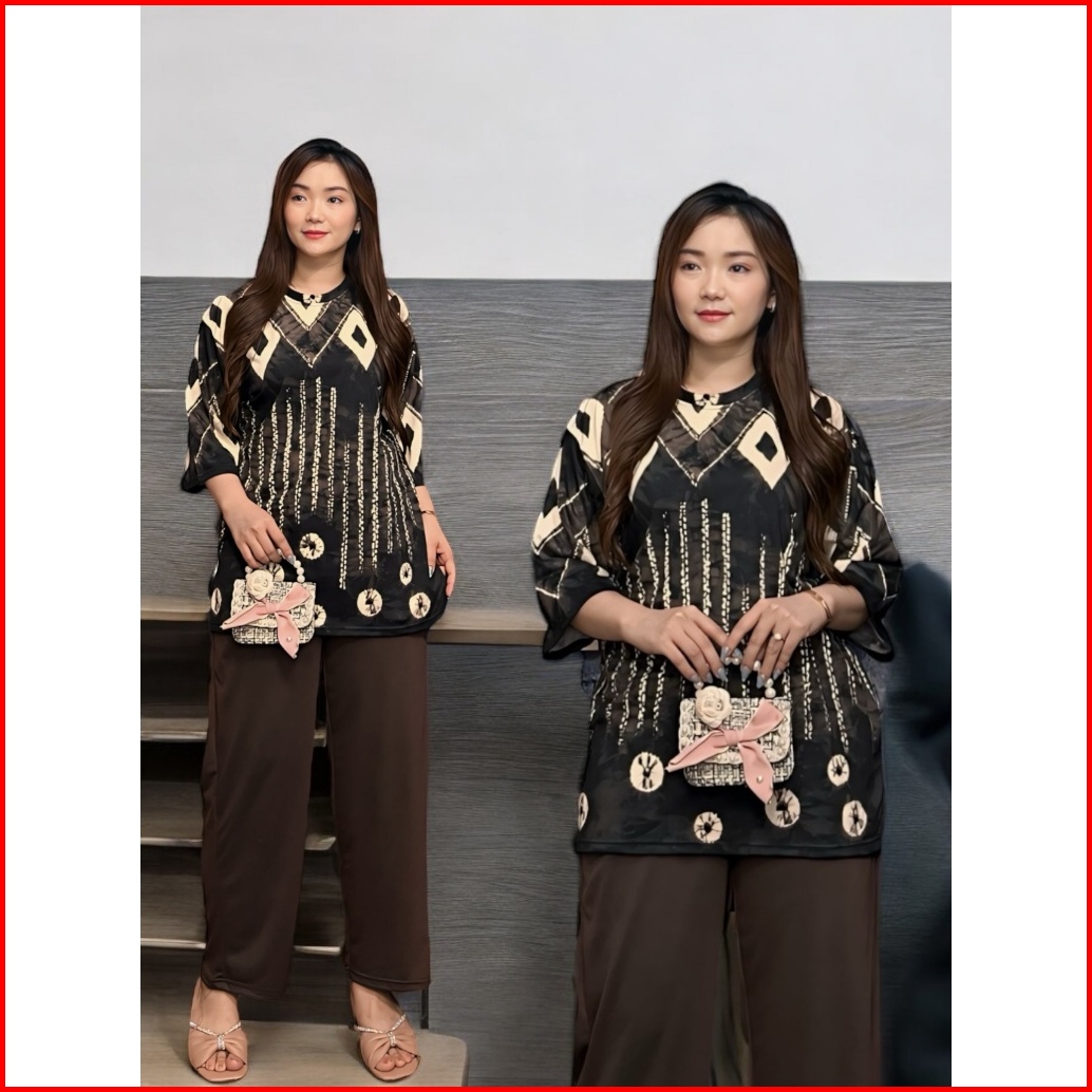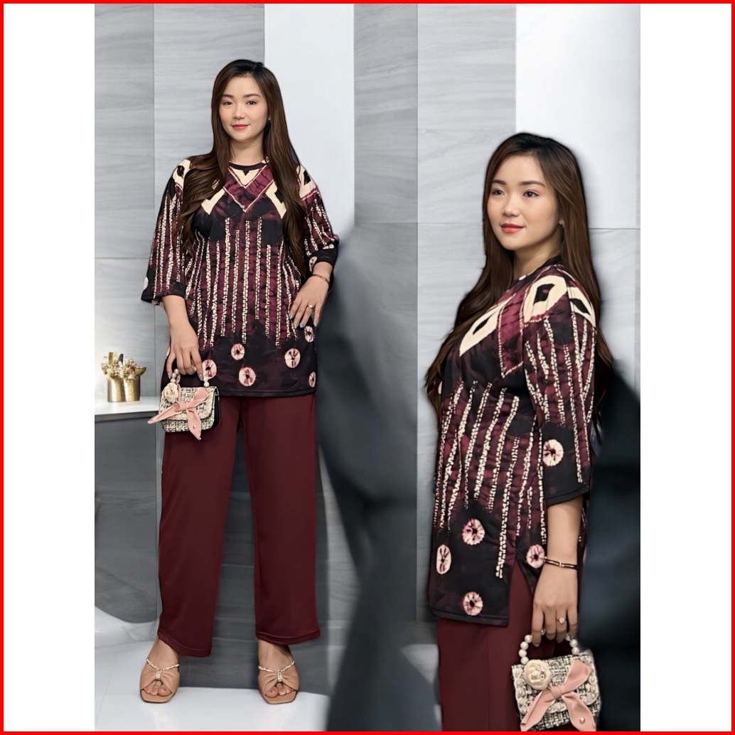 Gr Setelan Wanita Ld120 Oneset Motif Print Kekinian Lengan 3 4 Elegant