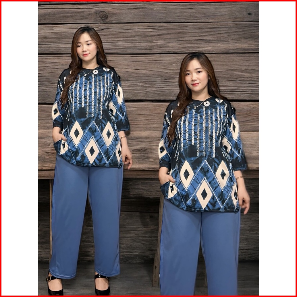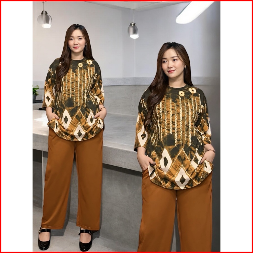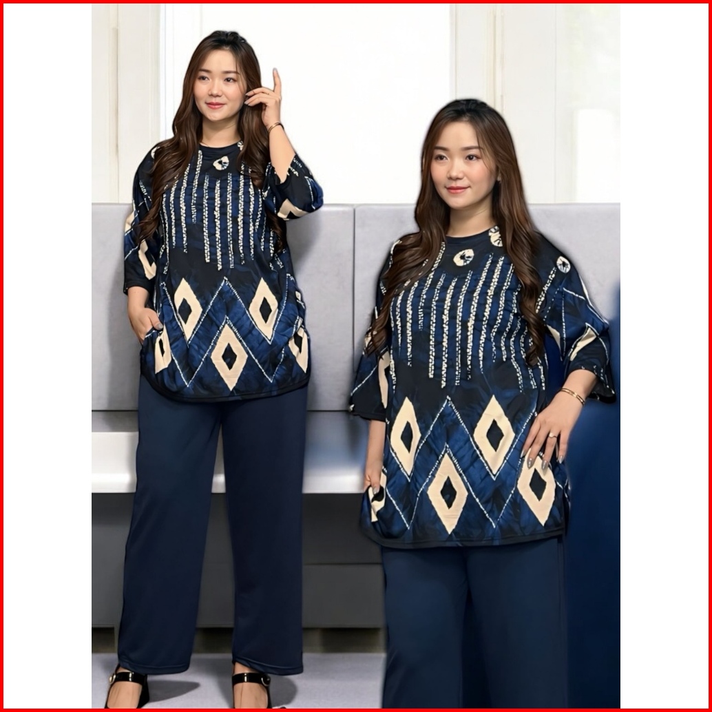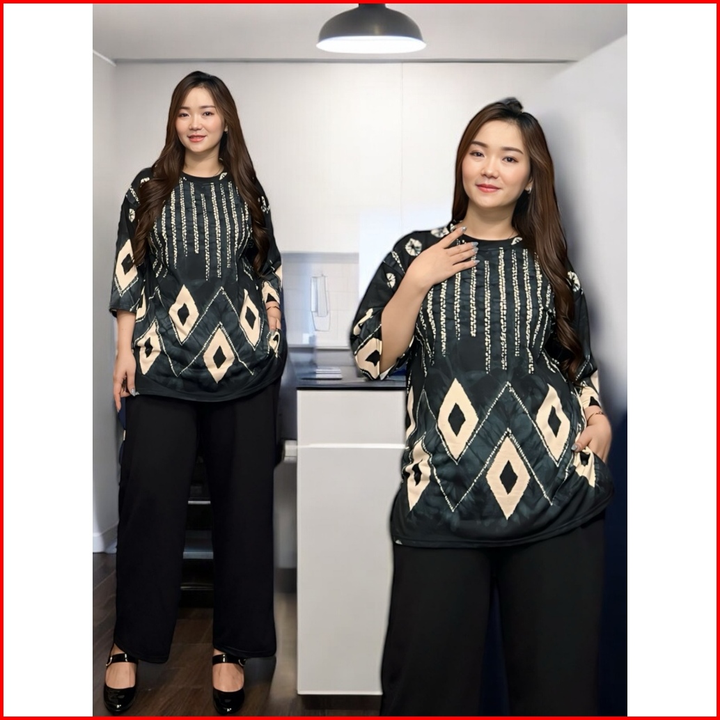Gr Setelan Wanita Ld120 Oneset Motif Print Kekinian Lengan 3 4 Elegant