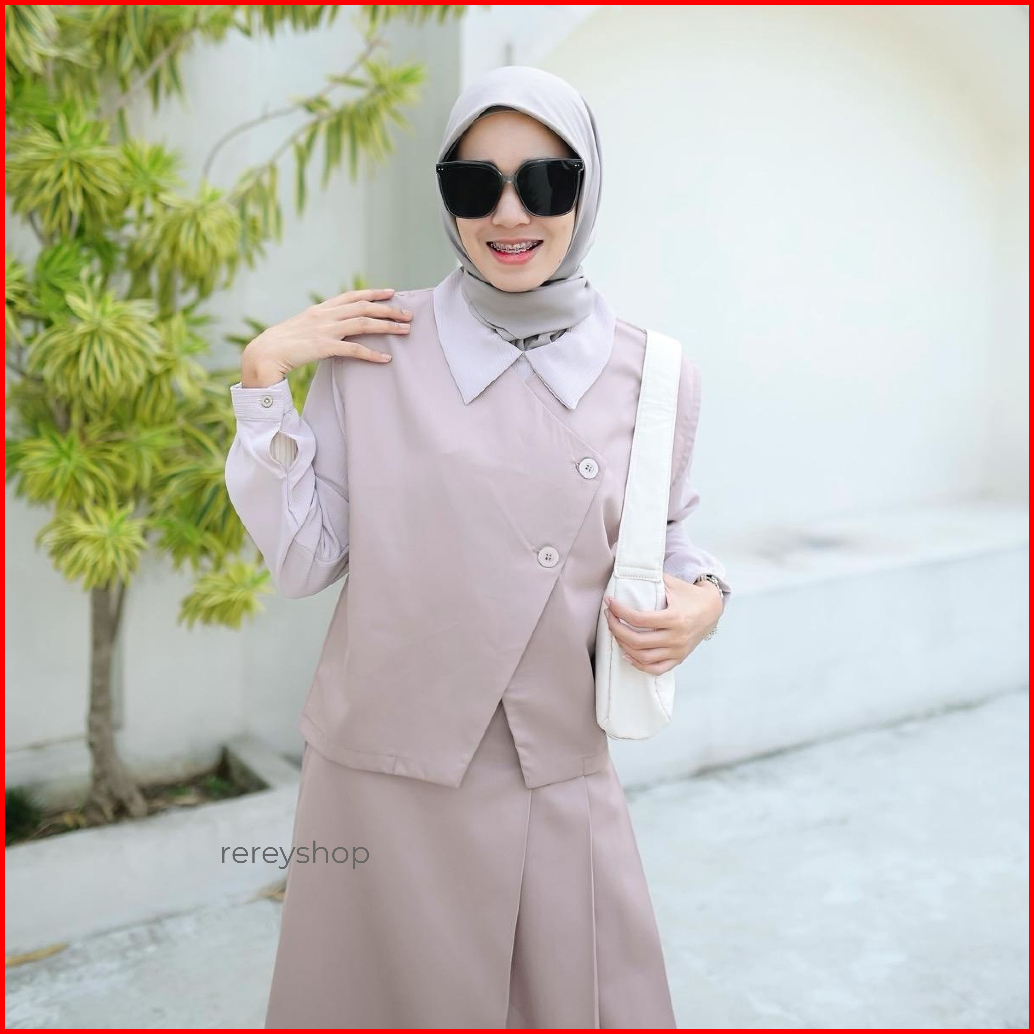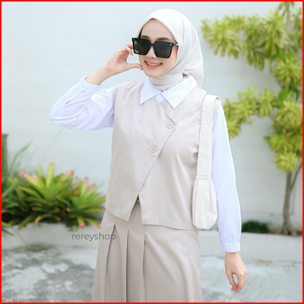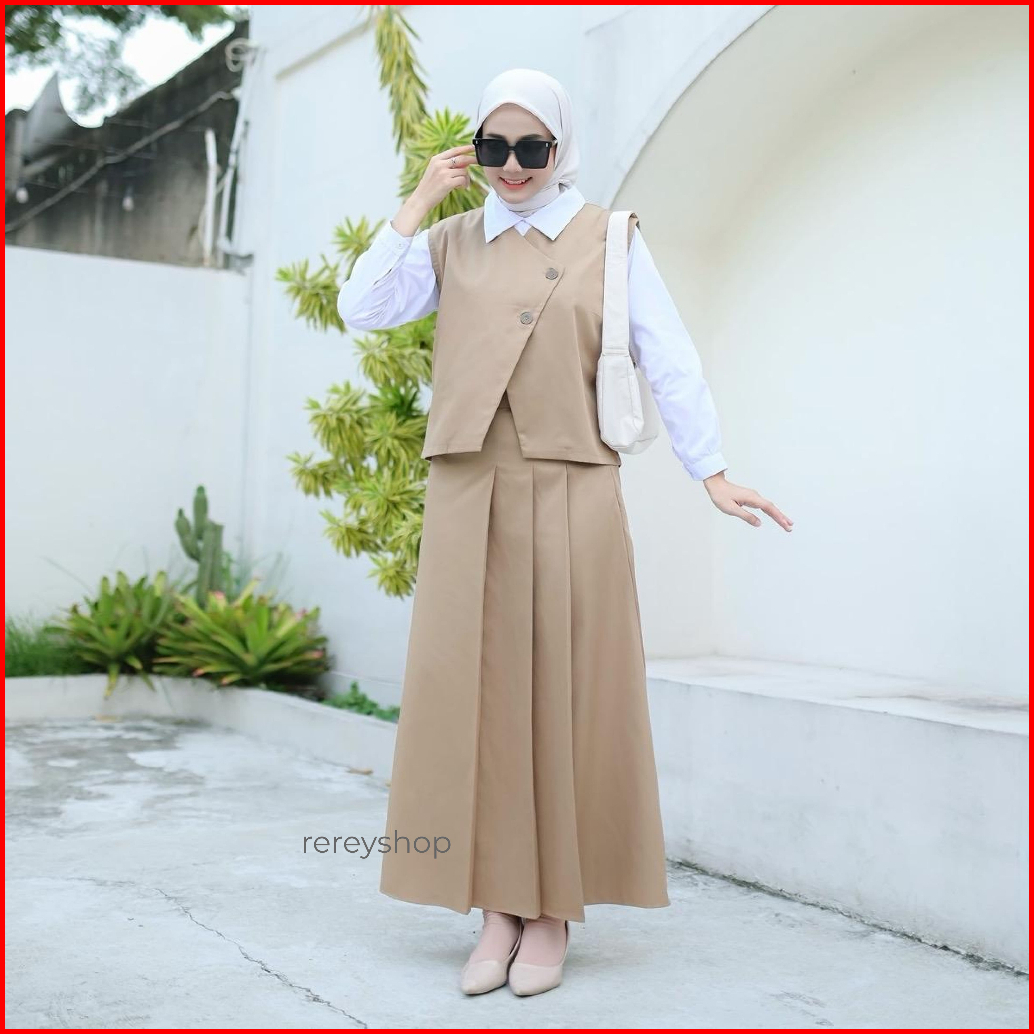 Rereyshop Keira One Set Vest Rok Bahan Tebal Unione Drill