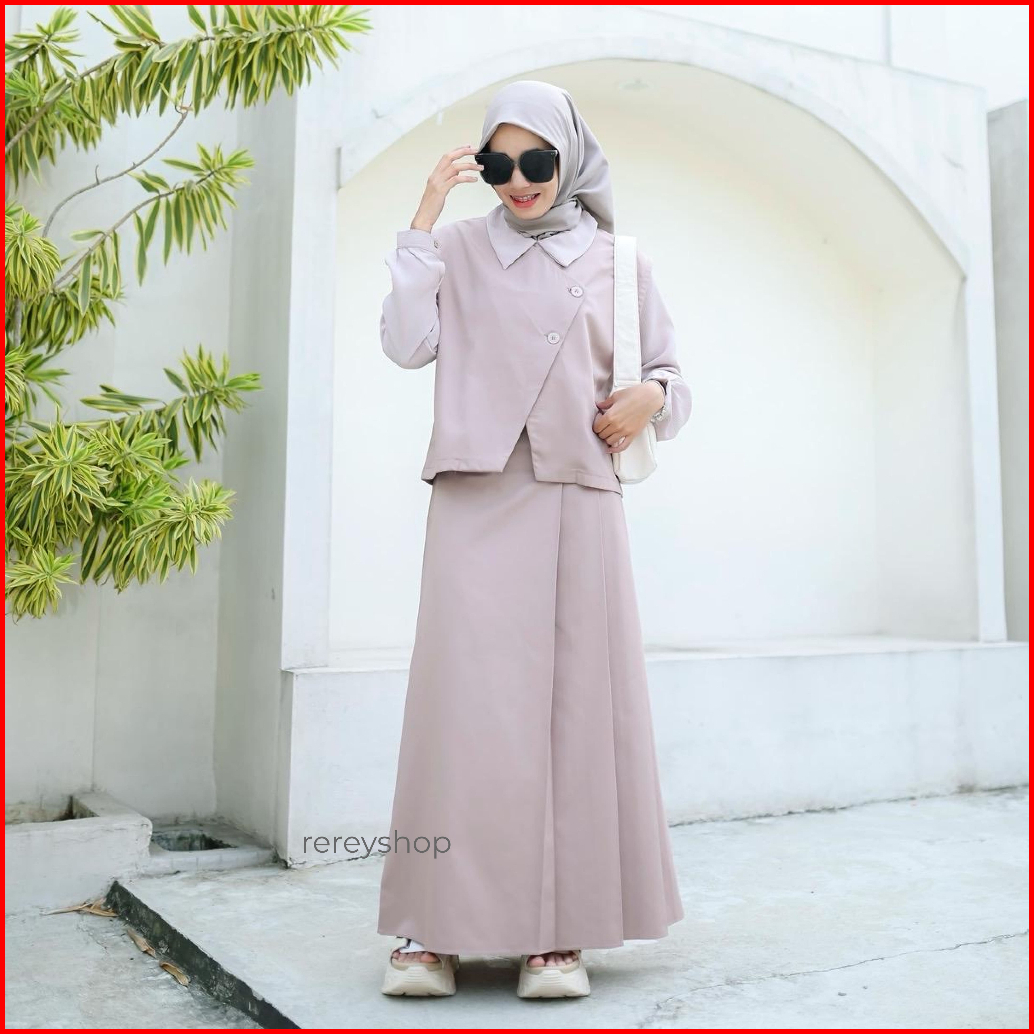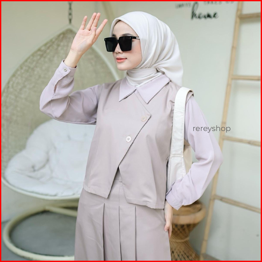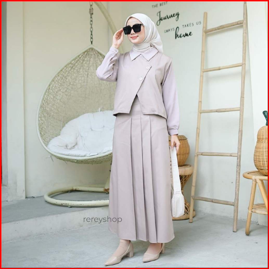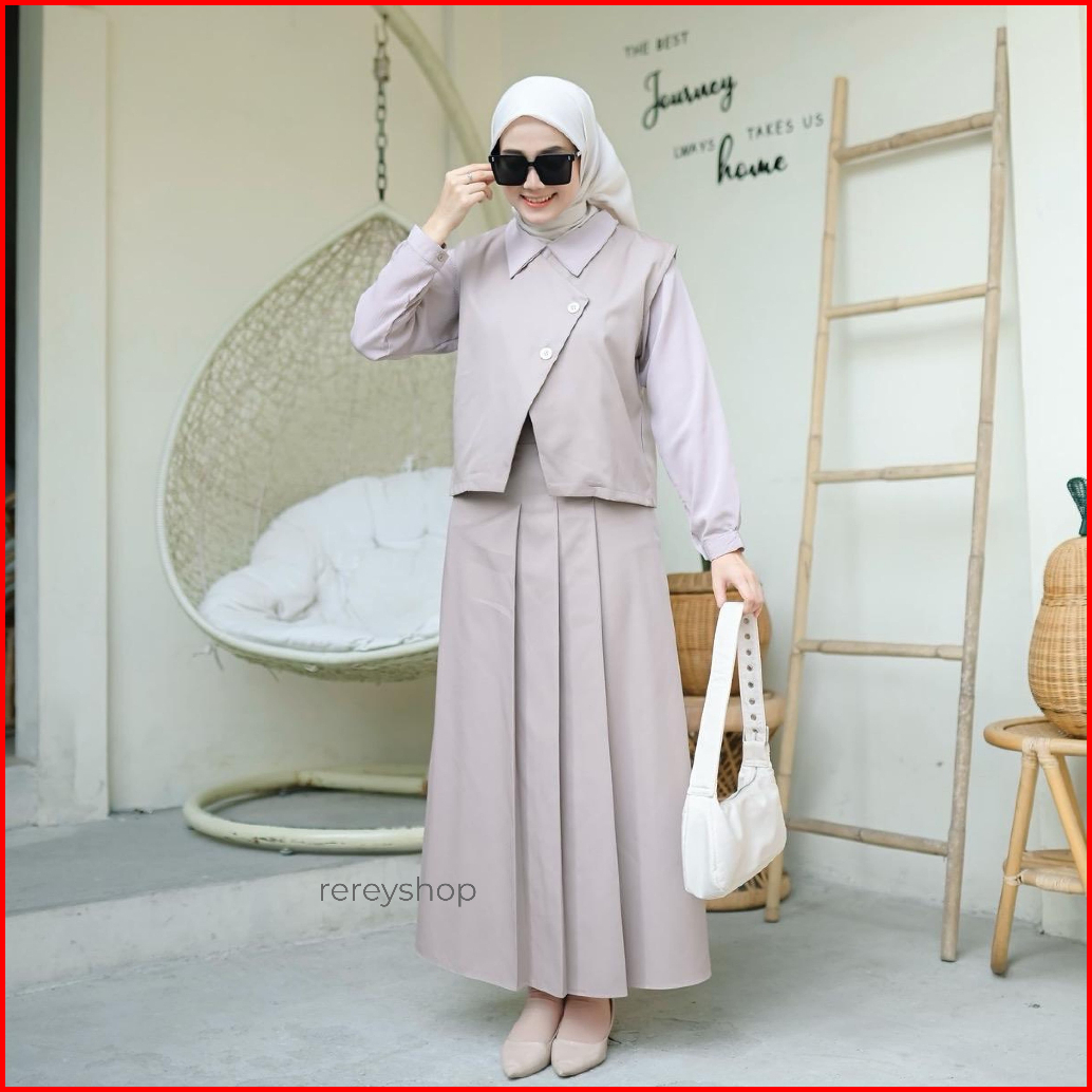 Rereyshop Keira One Set Vest Rok Bahan Tebal Unione Drill