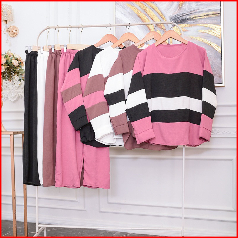 Vioni Set Crinkle Airflow Ld 110 Setelan Vioni One Set Hayako Setelan Polos Wanita Setelan Wanita Lengan Panjang Ootd Se