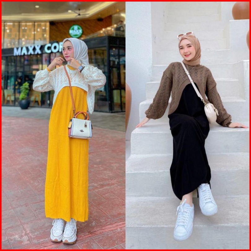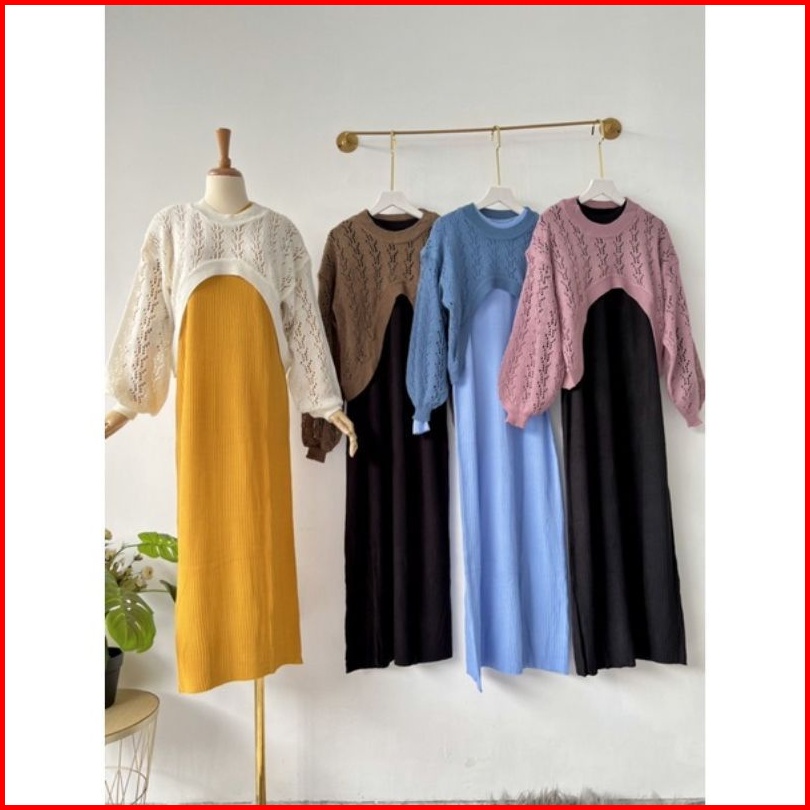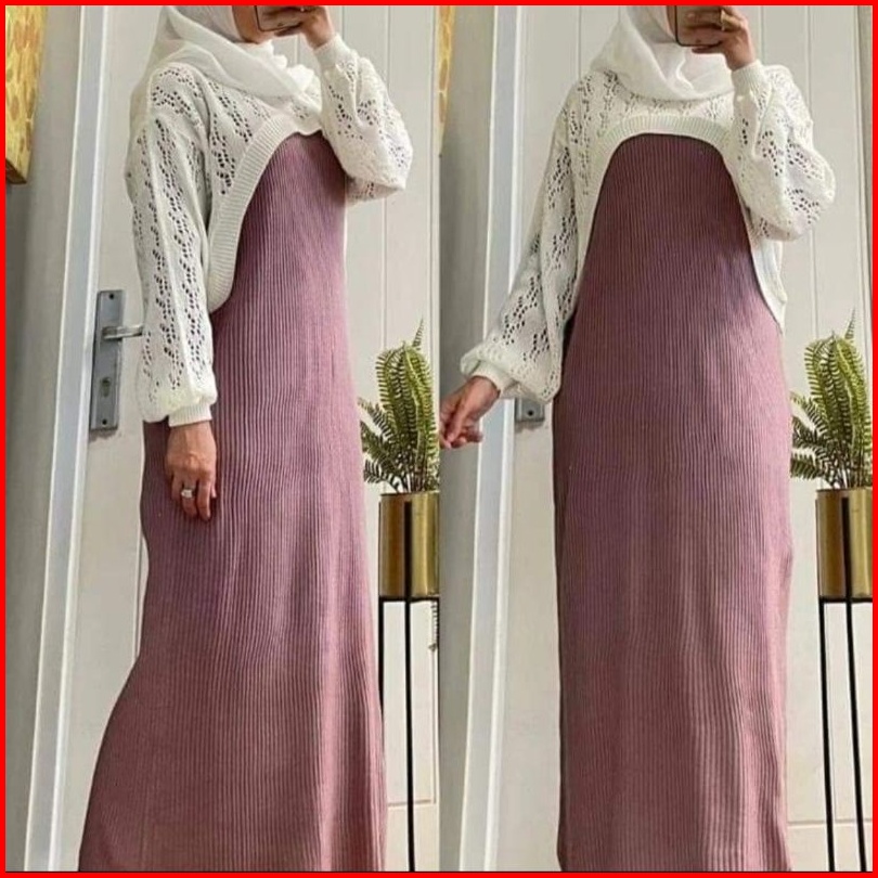 One Set Rajut Kekinian Baju Wanita Stelan Inner Outer Yura Baloon