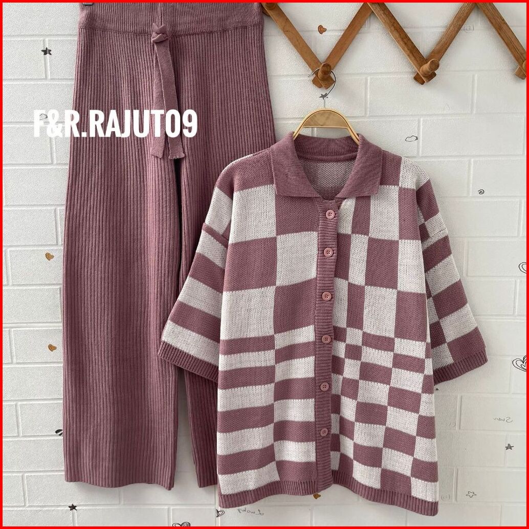 Oneset Knitwear Outfit Fuji Setelan Celana Kulot Rajut Wanita Premium Kekinian