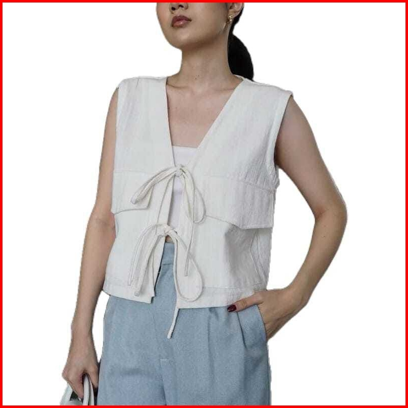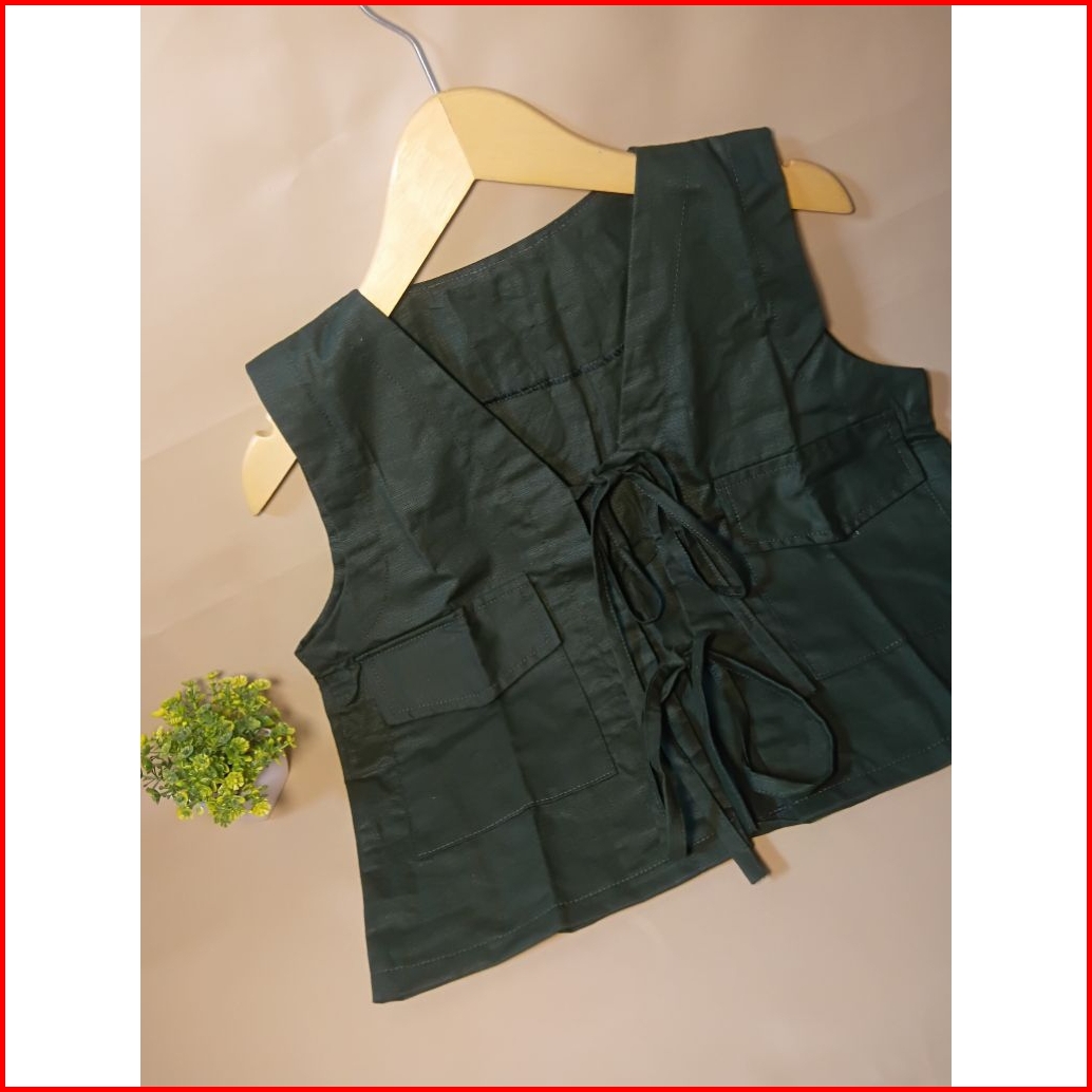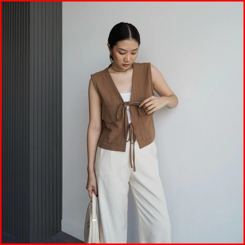 Rene-vest Rompi Wanita Linen Sigaret Premium Terbaru Atasan Outer Crop Tanpa Lengan Kekinian