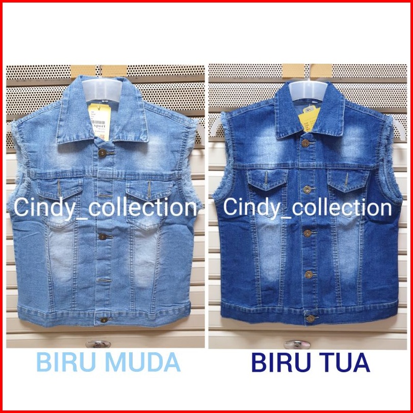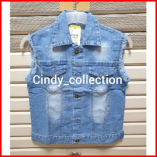 Rompi Jeans Kerah Rompi Wanita Vest L Xl Xxl Terbaru Biru Muda Biru Tua Cewek Wanita