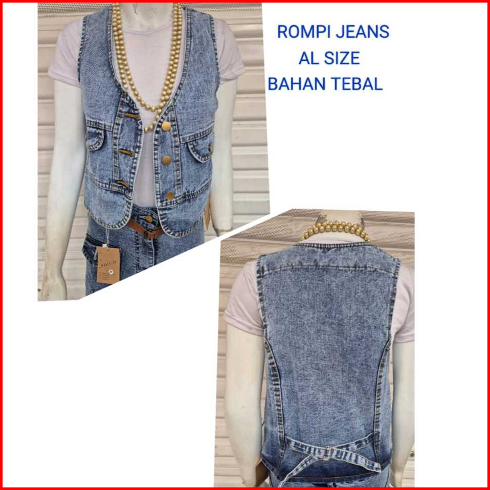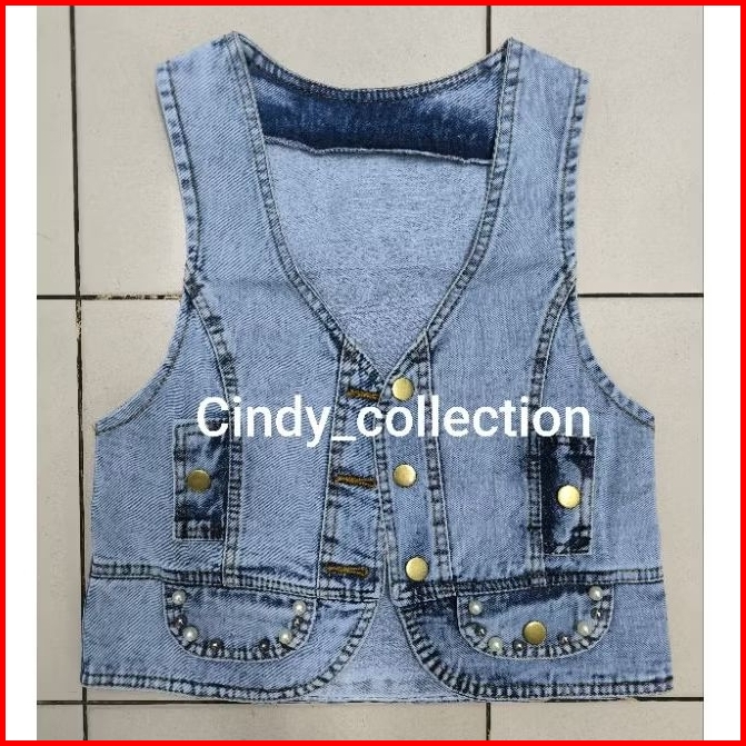 Rompi Crop Jeans Wanita Snow Kancing Tiga Vest Crop Rompi Wanita Crop Rompi Jeans Crop New Baru